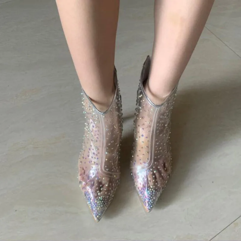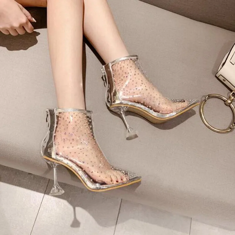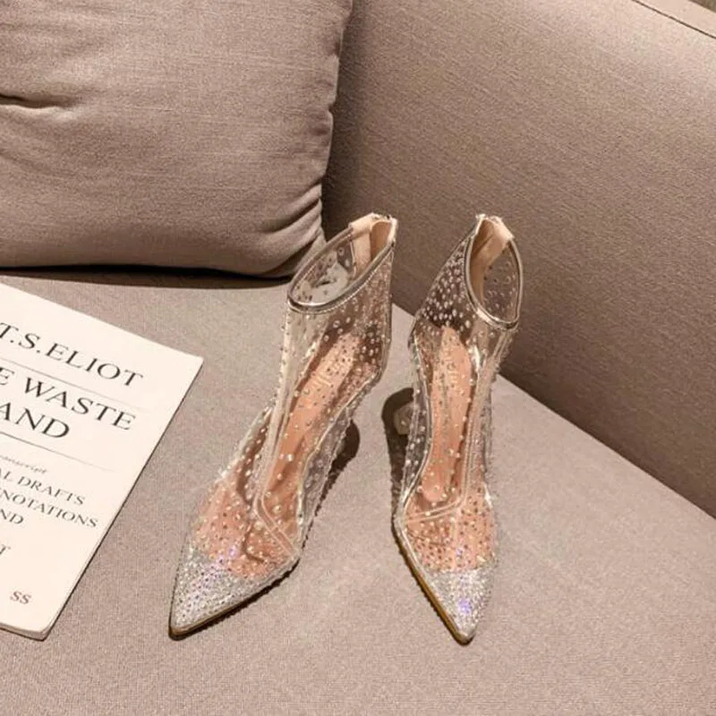 Стразы сексуальный прозрачный ПВХ; Женские ботильоны высокого качества; Обувь на высоком каблуке 9 см с острым носком на высоком каблуке; Сезон весна; 2020 летние туфли-лодочки на молнии; Ботинки