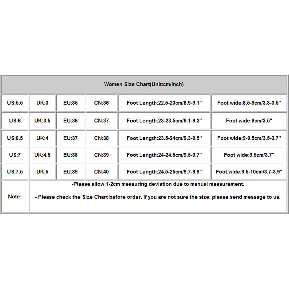 Для женщин Размеры Таблица (единица измерения: см/дюйм) Свяжитесь с нами: 5,5 Великобритания:3 ЕС: 35 CN:36 Массаж ног Длина: 22,5-23 см/8,9-9,1" Массаж ног Широкий: 8,5-9 см/3,3-3,5" Свяжитесь с нами:6 Великобритания:3,5 ЕС: 36 CN:37 Массаж ног Длина: 23-23,5 см/9,1-9,3" Массаж ног Широкий: 9 см/3,5" Свяжитесь с нами:6,5 UK:4 ЕС: 37 CN:38 Массаж ног Длина: 23,5-24 см/9,3-9,5" Массаж ног Широкий: 9-9,5 см/3,5-3,7" Свяжитесь с нами:7 Великобритания: 4,5 ЕС: 38 CN:39 Массаж ног Длина: 24-24,5 см/9,5-9,7" Массаж ног Широкий: 9,5 см/3,7" Свяжитесь с нами:7,5 UK:5 ЕС: 39 CN:40 Массаж ног Длина: 24,5-25 см/9,7-9,9" Массаж ног Широкий: 9,5-; Высотка каблука 10 см/3,7-3,9" Примечание: -Возможны отклонения в 1-2 см вследствие измерений вручную.- Пожалуйста, проверьтеРазмеры диаграммыПрежде чем делать заказ. Если вы не уверены в размере, Пожалуйста, отправьте нам сообщение.