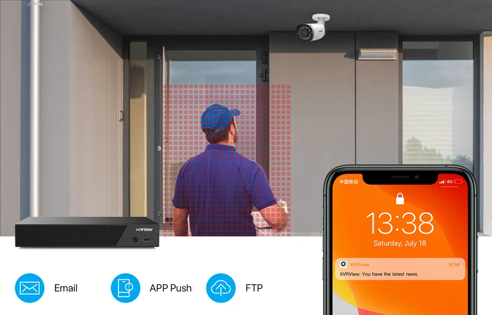 При обнаружении движения в области мониторинга Мгновенная Электронная почта будет отправлена на ваш почтовый ящик и телефон автоматически. Получайте все сведения, даже если вы находитесь вдали от дома.