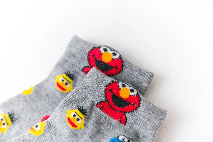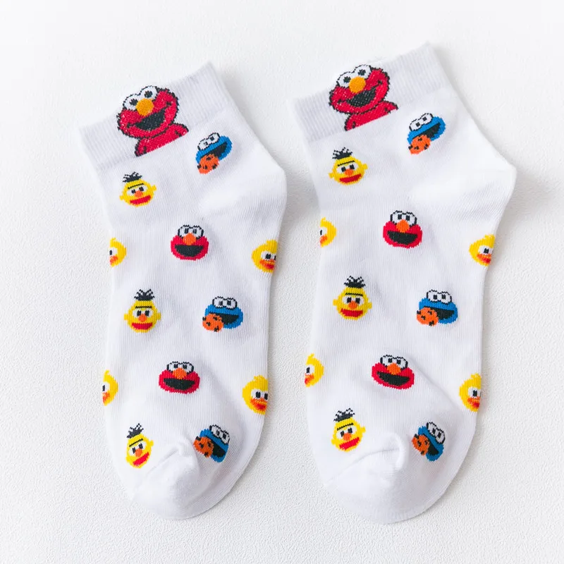 Женские носки, женские забавные Носки с рисунком из мультфильма «Улица Сезам» для девочек, женские милые хлопковые носки Kawaii, белые, черные, весна-осень-лето