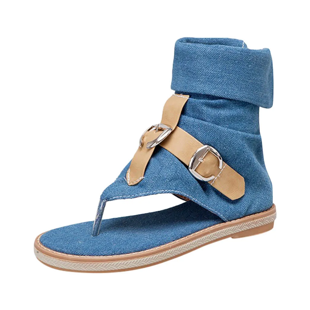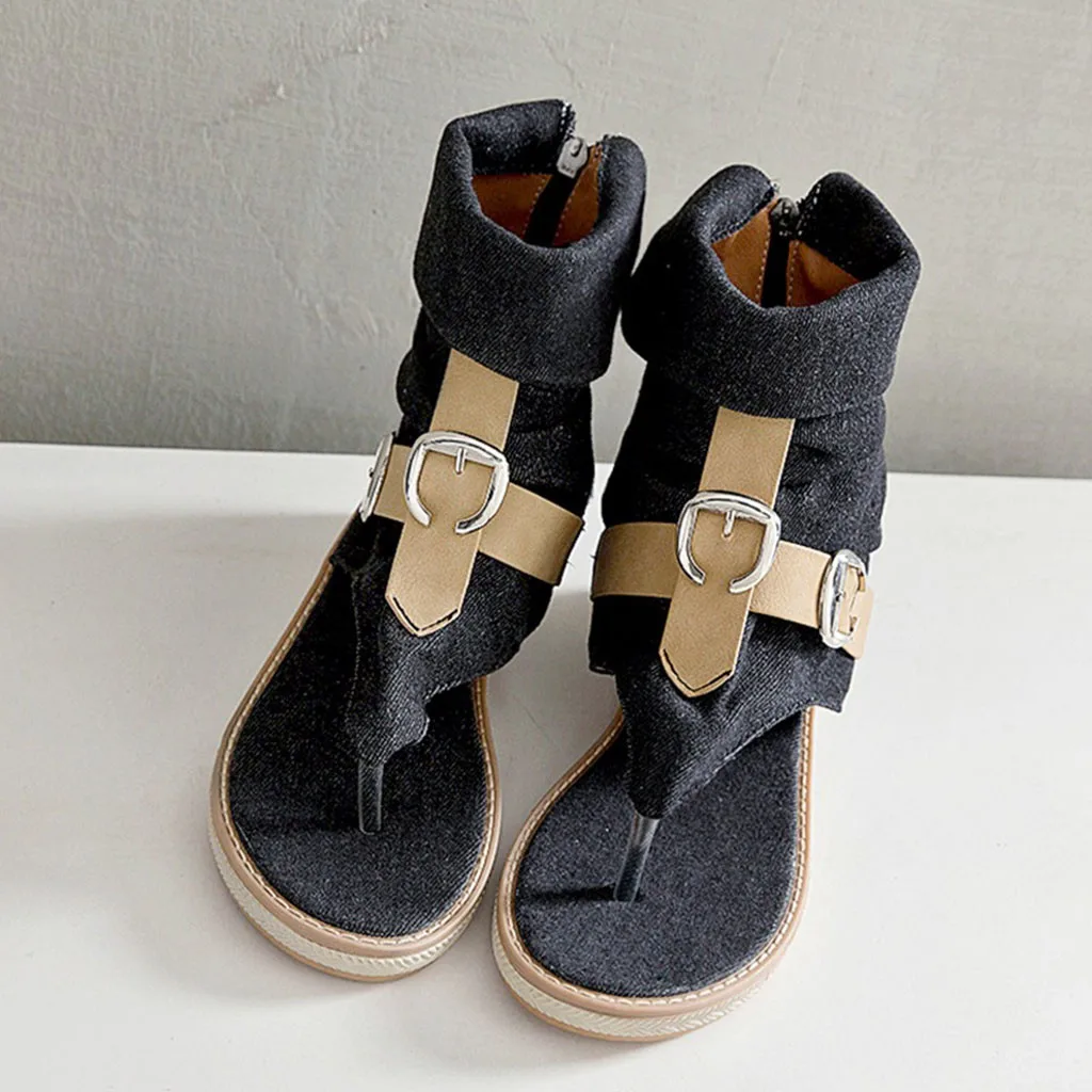 Модные повседневные сандалии из джинсовой ткани смешанных цветов с круглым носком на молнии; женская обувь