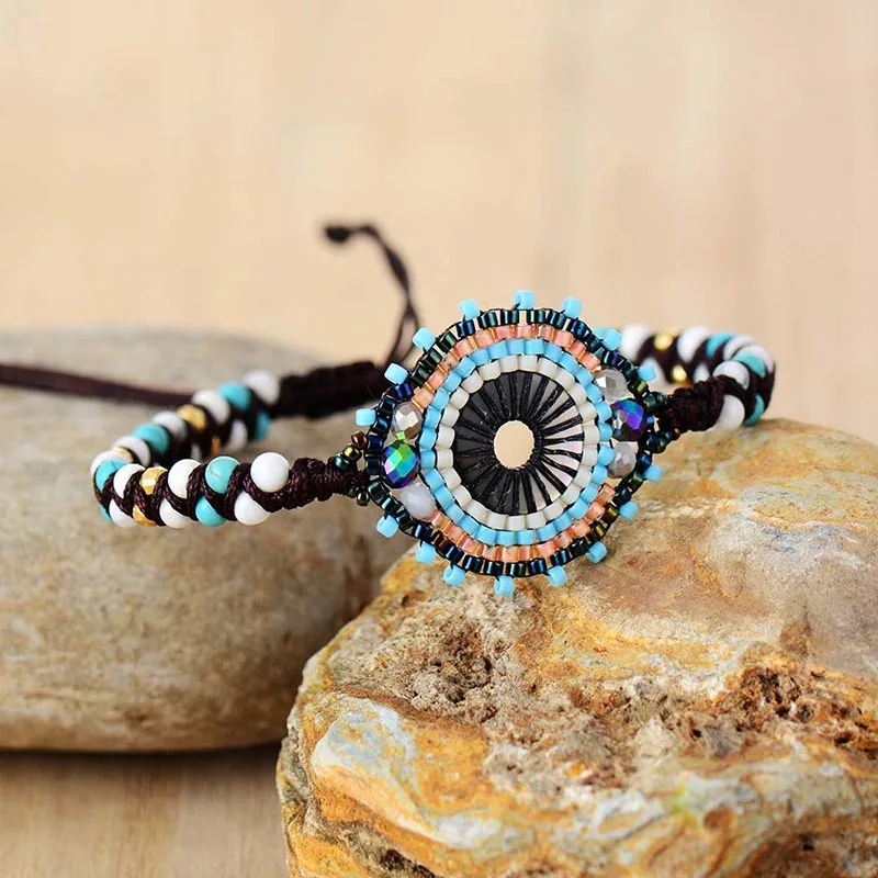 Изысканные бусы, плетеные браслеты с камнями, богемные плетеные браслеты из бисера, регулируемый браслет, ювелирные изделия ручной работы, оптовая продажа