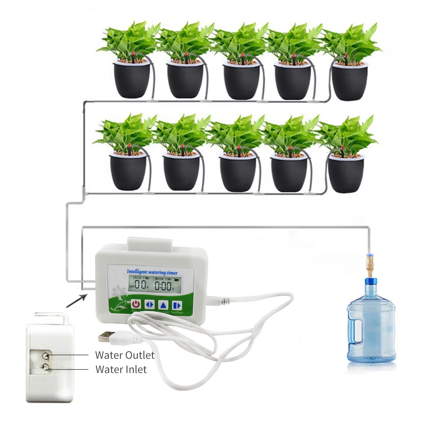 Автоматические поилки для растений-простой и эффективный способ полива растений, когда вы находитесь в нерабочем месте или нет времени ухаживать за вашими растениями. Комбинируйте насос и таймер в одной системе полива комнатных растений, Откачивая воду из контейнера, точечный полив точно там, где это необходимо, используя меньше воды, чем традиционные распылительные и капельные головки, делает вашу систему полива идеальной для экономии воды в условиях засухи.