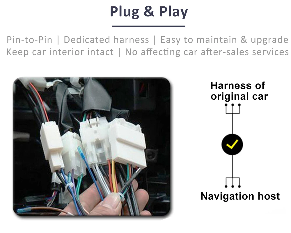 14) Pin-to-Pin connectors and standard wiring harnesses for plug&play.