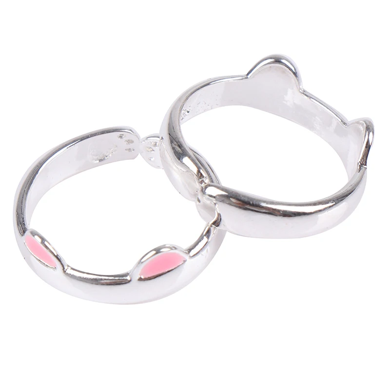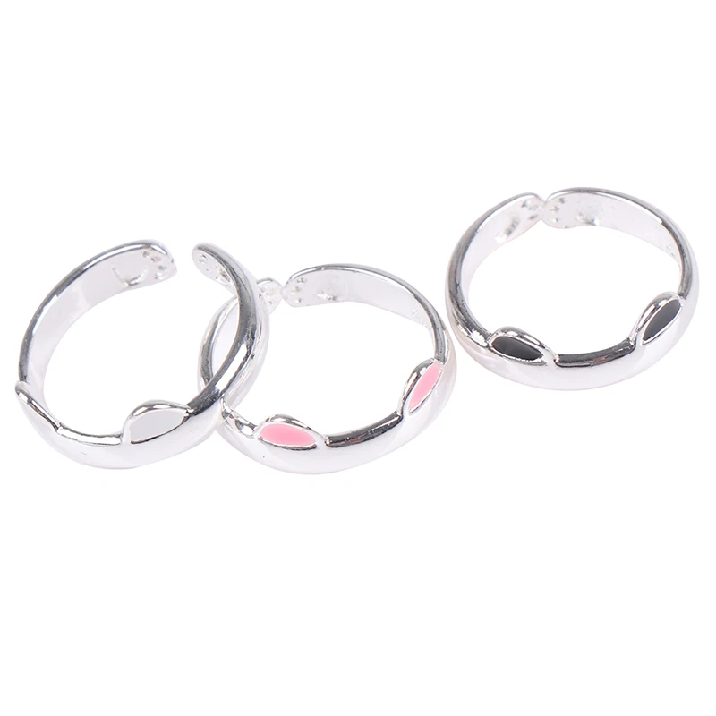 Серебряное кольцо с кошачьими ушками и открытым дизайном, милое регулируемое кольцо для подарка для женщин и детей
