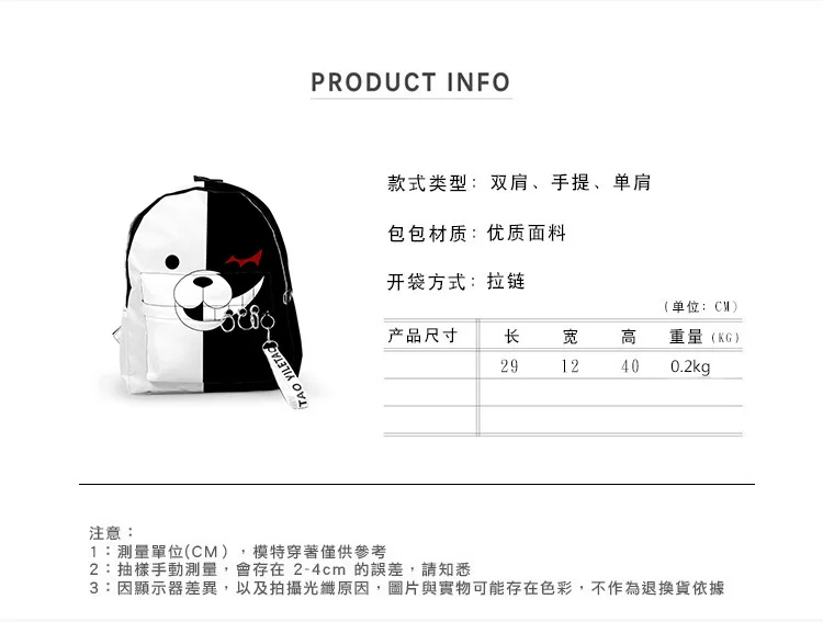 Нейлоновый дорожный рюкзак Danganronpa, рюкзак для студентов, школьная сумка, размер 40, 29, 12 см