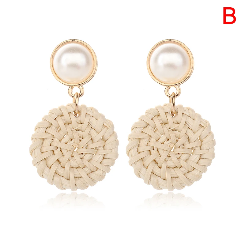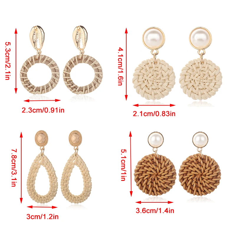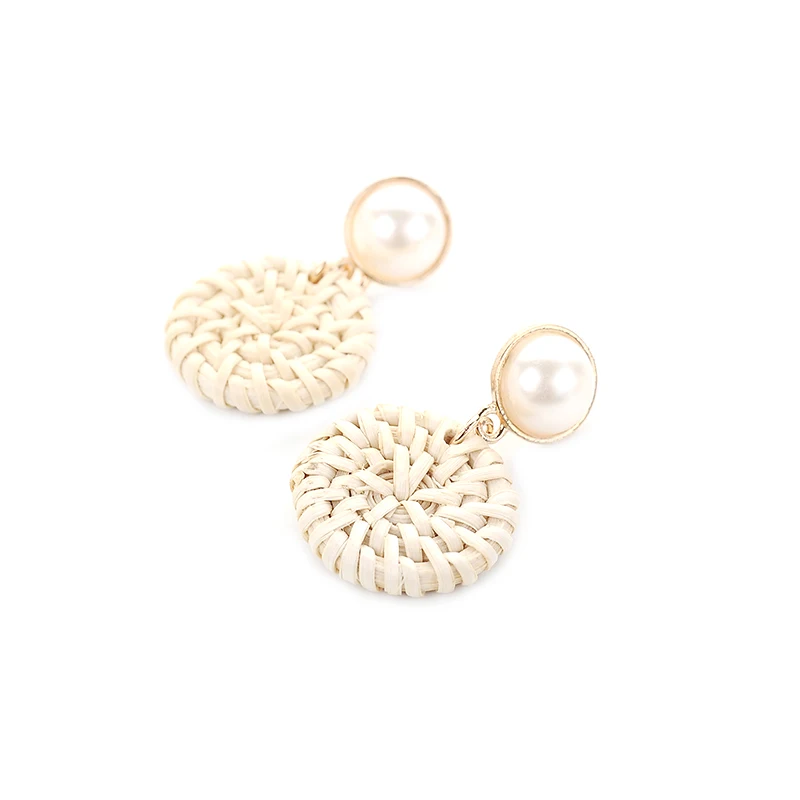 Посылка включает в себя: 1 пара соломенное плетение, Ротанговые серьги