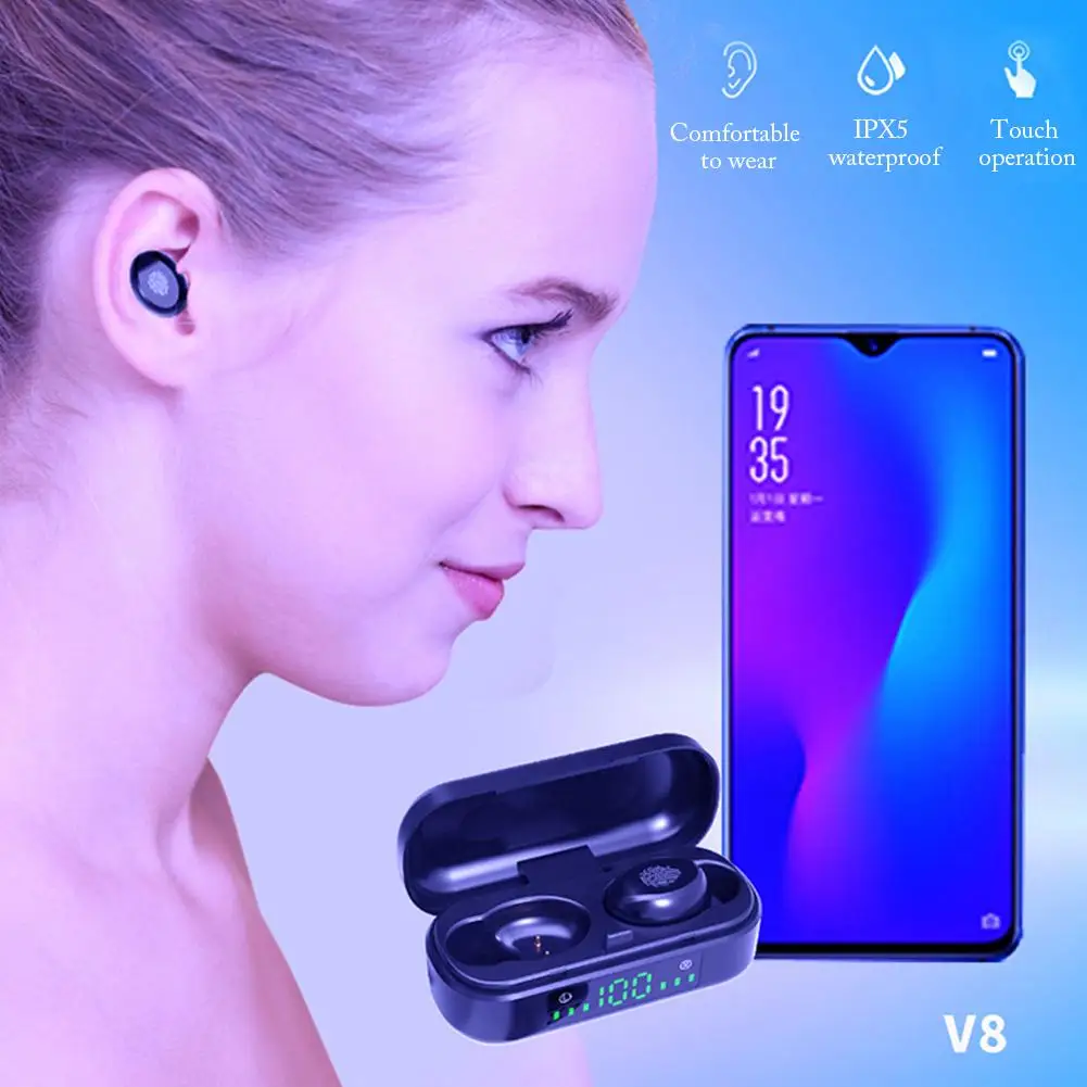 1. 8D объемный звук, 5,0 бинауральный чип, супер большая емкость, настоящая Беспроводная bluetooth-гарнитура