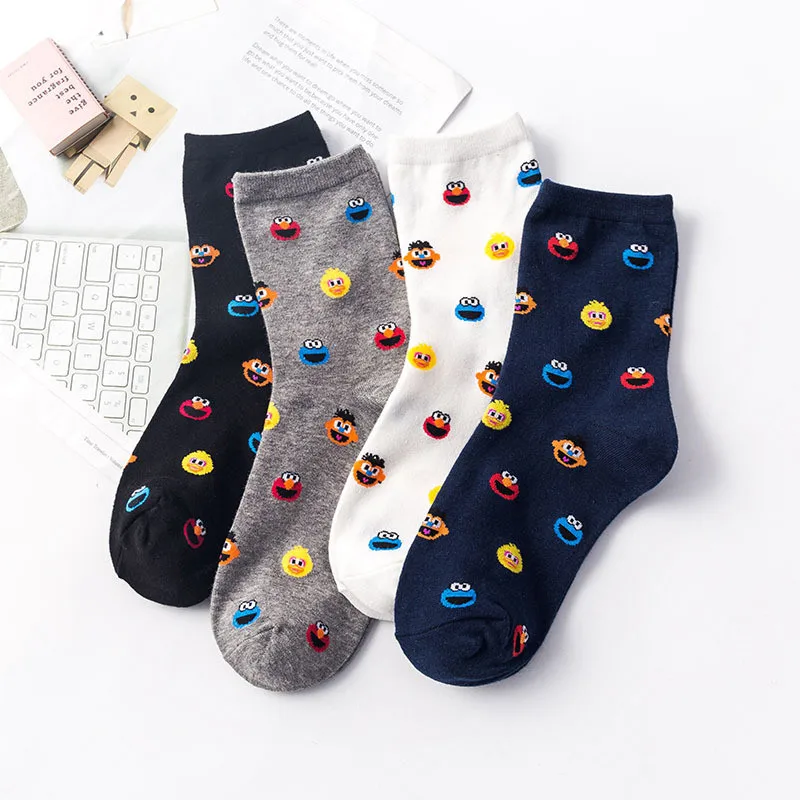 Футболка с рисунками из мультфильма «Улица Сезам» носки для женщин и мужчин, Коржик модные забавные Милая трубка носка удобные женские белые хлопковые носки для девочек