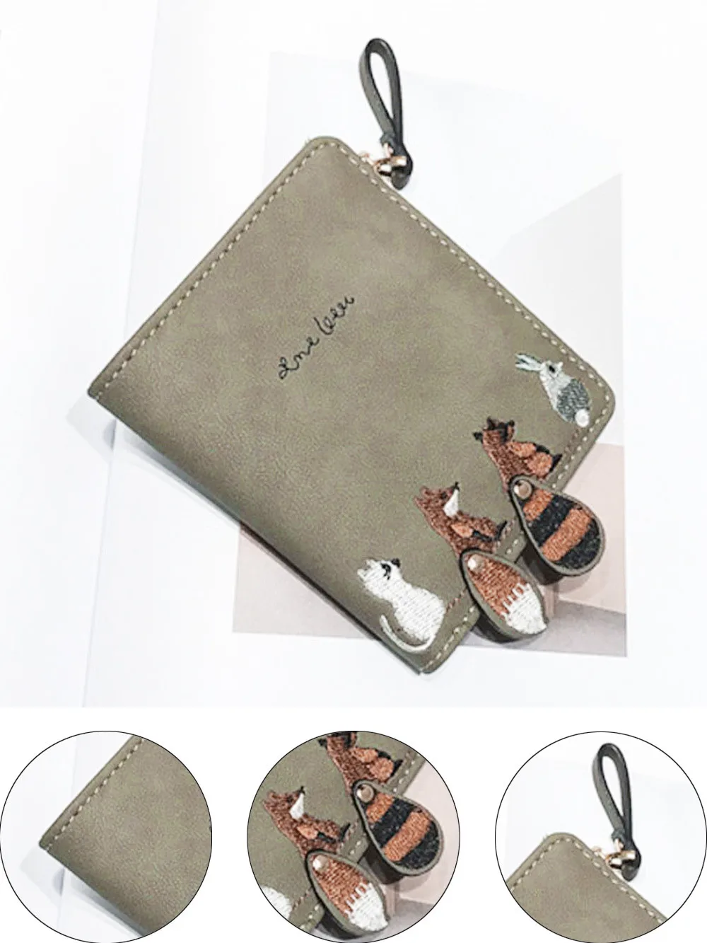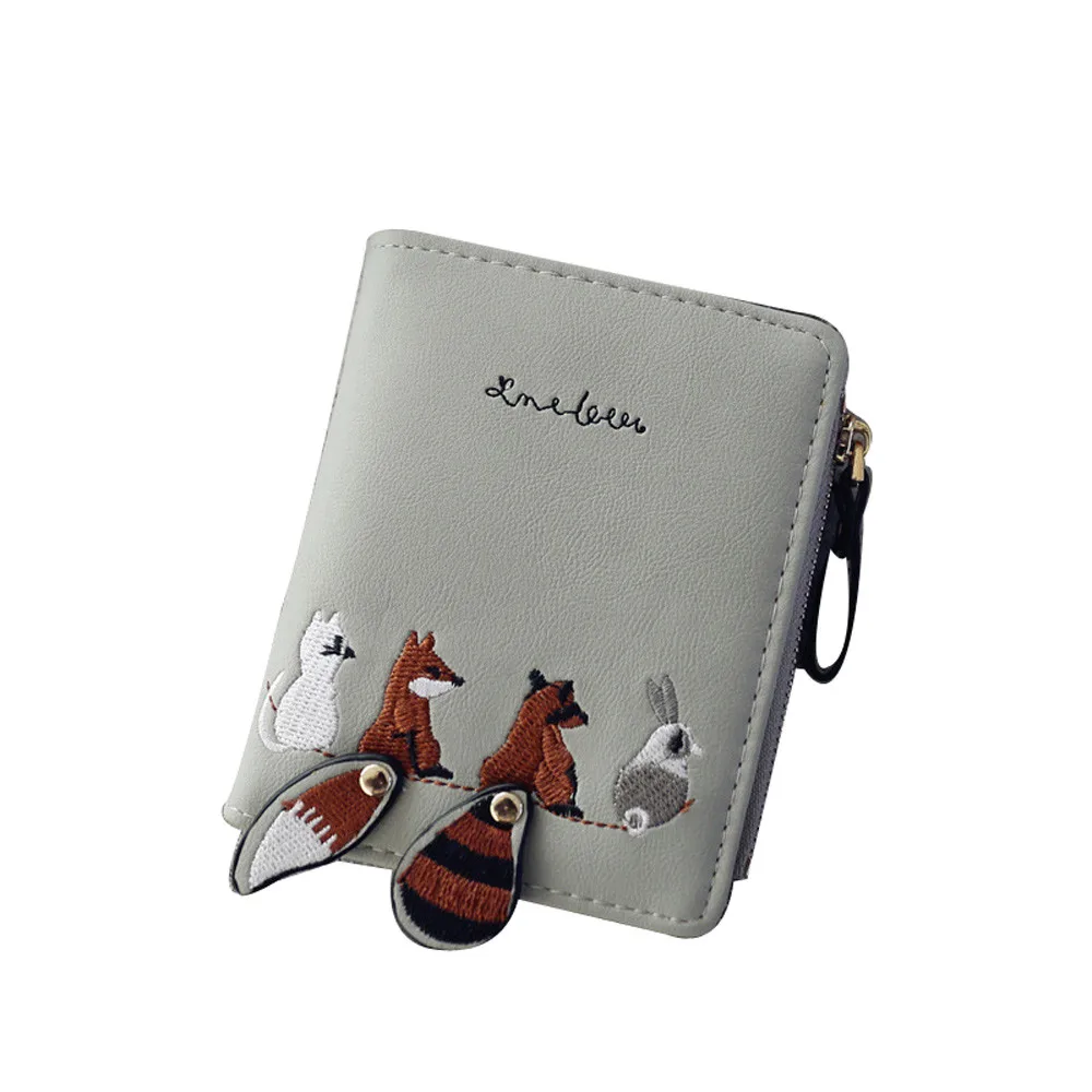 Женский кошелек с милыми мультяшными животными, короткий кожаный женский маленький кошелек для монет, кошелек на молнии с застежкой, милый держатель для карт с лисой для девочек