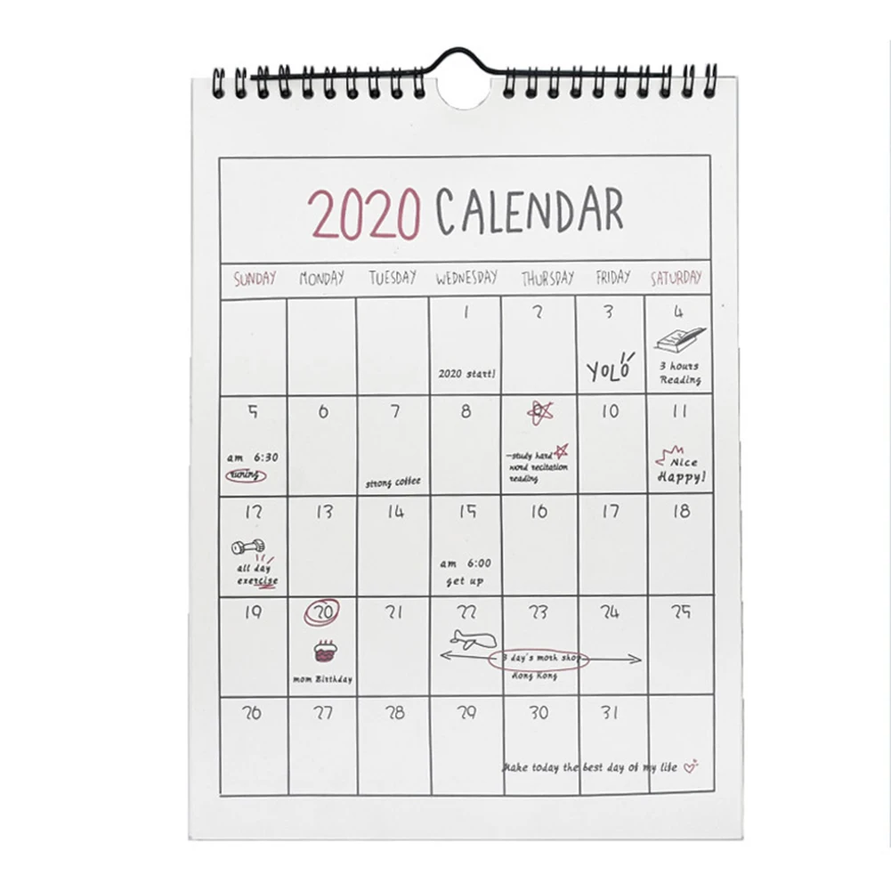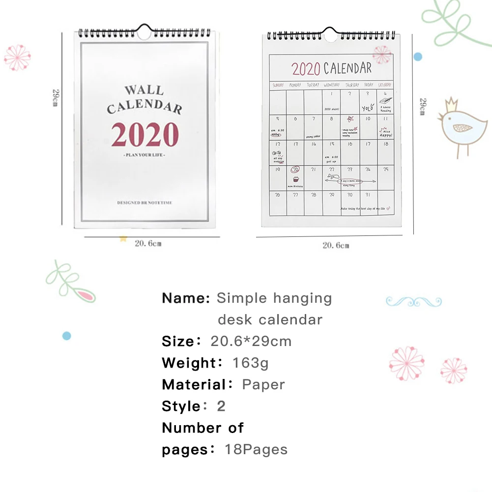 Название продукта: Календарь 2020 висячий график Памятка ежемесячная Личная школа планирования год Семейные настенные календари для украшения дома и офиса