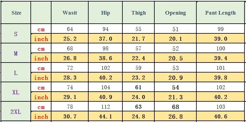 Таблица размеров