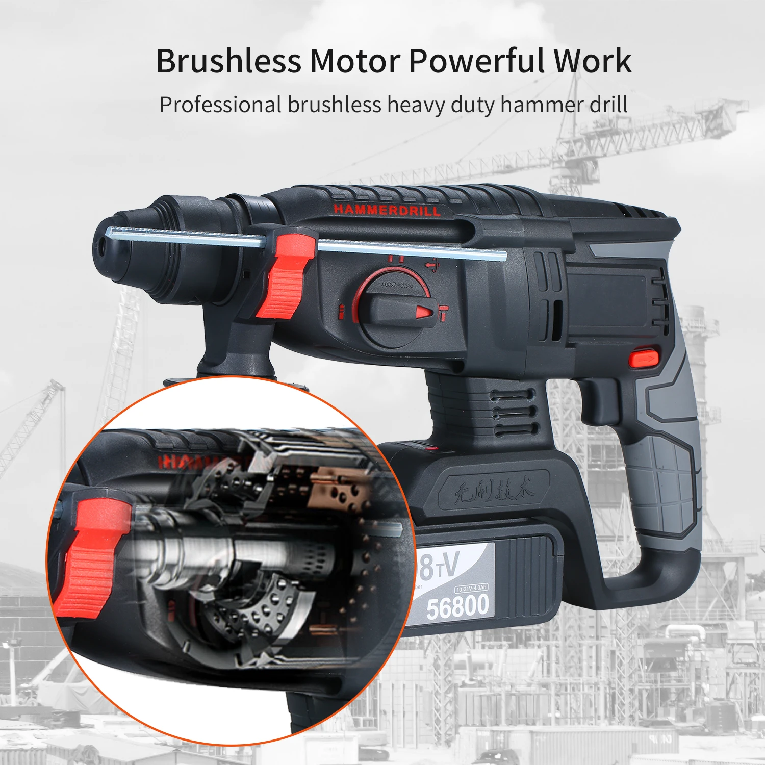 Широкое применение --- профессиональная роторная дрель для молота обеспечивает мощное воздействие и прочность молота для завершения тяжелых проектов по дереву, каменной кладке, твердой стали и бетону, что означает, что большая часть работ может быть удовлетворена.