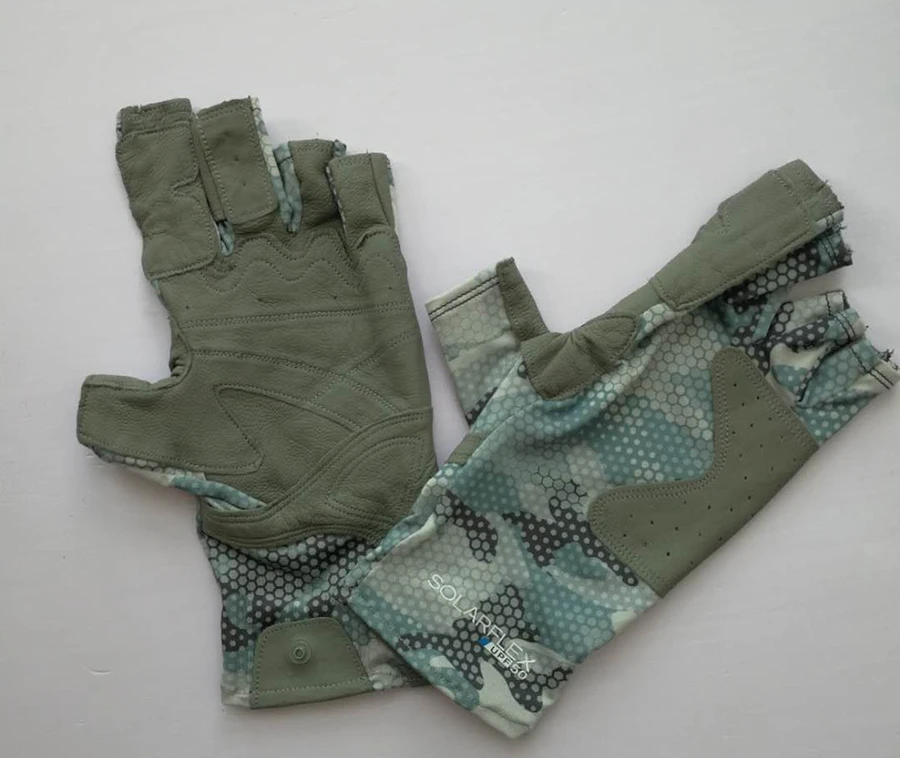 1. Технология ткани: SolarFlex®Ткань стрейч: 92% полиэстер/8% спандекс 2. Легкая, быстросохнущая и дышащая эластичная ткань 3. Водонепроницаемые накладки из козьей кожи на ладони 4. Удлиненный указательный и средний палец 5. Сопряжение защелок 6. Защита от солнца UPF 50