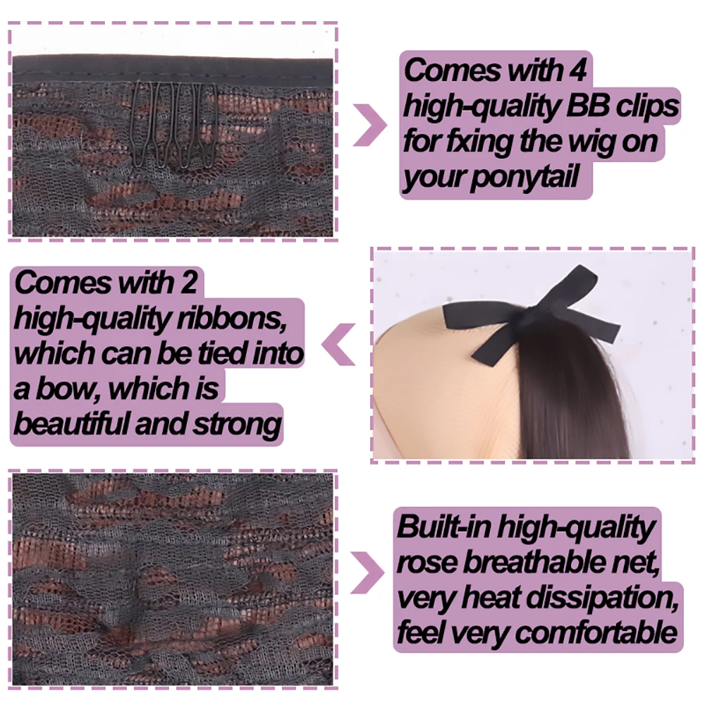 Обратите внимание: как и все Искусственные парики, статическое электричество и влажность также могут привести к запутыванию хвоста. Используя продукты, которые смягчают волосы, текстура конского хвоста остается гладкой. При запутывании Используйте широкий гребень для волос, чтобы чистить от нижней части хвоста.