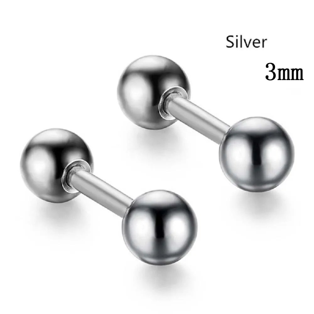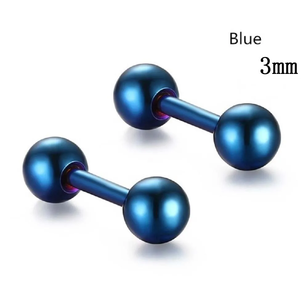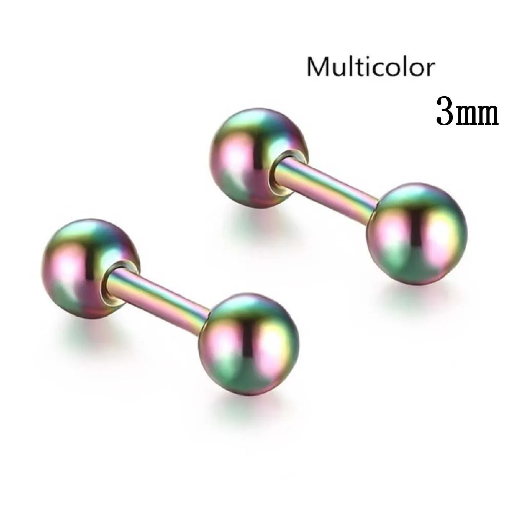 Материал: Нержавеющая сталь Пол: унисекс Стиль: модные Стиль Цвет: золотой, серебряный, черный, розовое золото, синий, разноцветный Вес: 3 мм Размер: 1 г; 4 мм Размер: 2 г: 5 мм Размер: 3 г Упаковка: 1 пара сережек Эти серьги имеют 3 размера и 6 цветов на выбор Можно носить как мужчинам, так и женщинам Форма штанги простая, но модная и различная