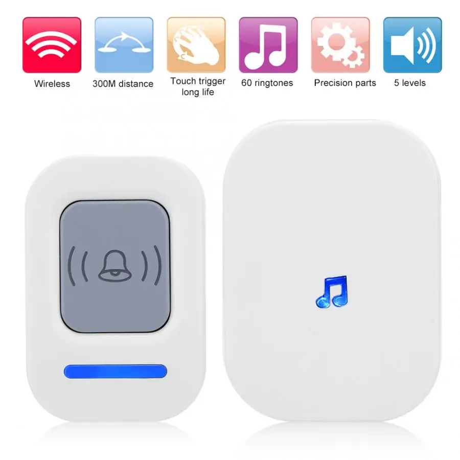 Домашний Беспроводной дверной звонок 984.3ft, музыкальный дверной звонок на большое расстояние, контроль доступа США 90-260 в