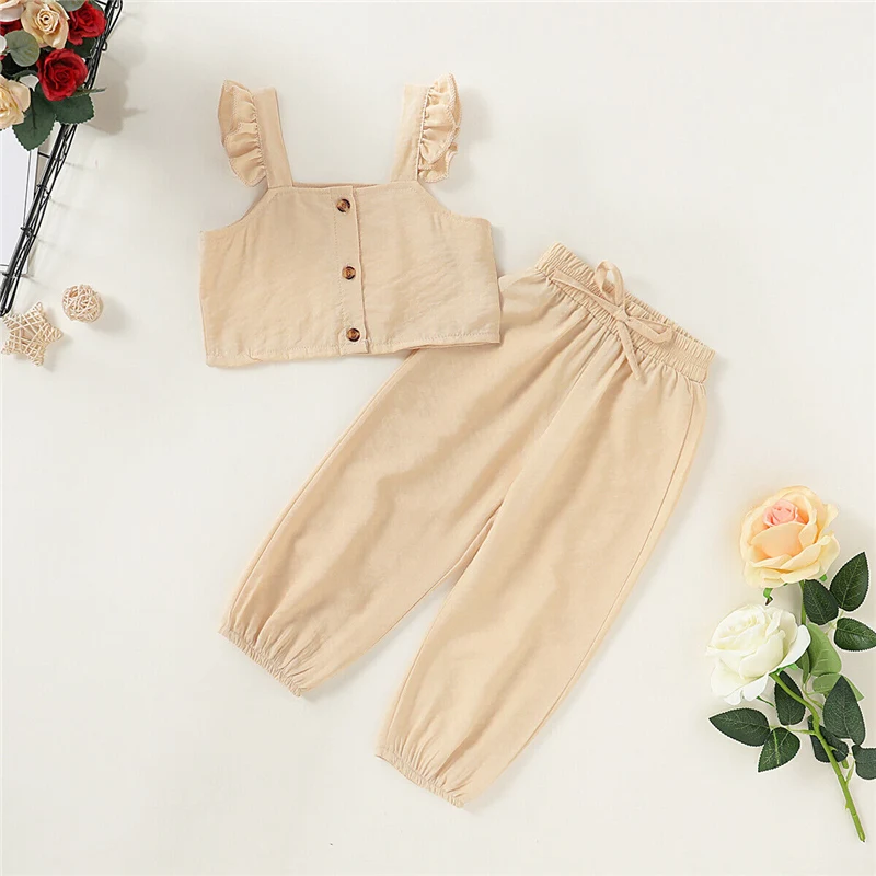 2020 летние комплекты одежды для маленьких девочек спортивный жилет розового, желтого, синего цвета топ на бретелях + длинные штаны, комплект одежды, спортивный костюм От 1 до 6 лет