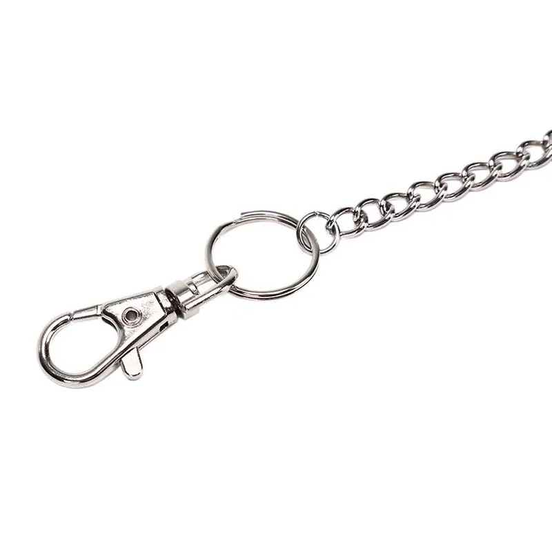 -Прочная и длинная цепочка с зажимом на одном конце, стандартное кольцо для ключей на другом.