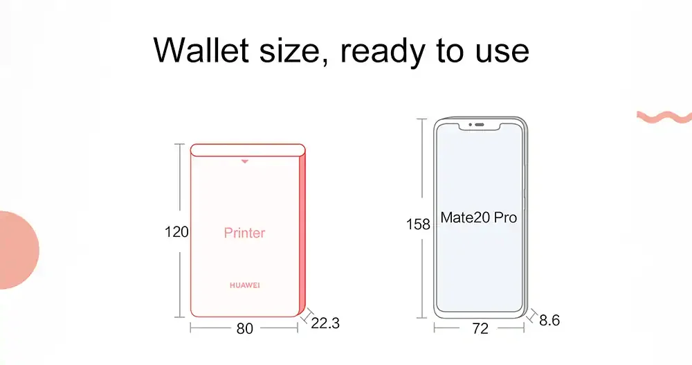 Основные Особенности: ● Мини-размер, очень портативный, и вы можете положить его в карман ● Поддержка печати без чернил, печать по Bluetooth, легкая и портативная, многофункциональная печать ● 500 мА/ч, литий-ионный аккумулятор время зарядки составляет 2,5 h и 23 листов может быть напечатаны после того, как он был полностью заряжен ● Подключается по Bluetooth, вы можете печатать на своем телефоне, подходит для Android 8,0 и выше, iOS 10.0.2 и выше, и HUAWEISHARE печать поддерживает EMUI9.0.1 и выше Технические характеристики: ● Технология печати: zink ● Скорость передачи: 10S ● Время печати: 1 мин ● Размер печати: 50 мм x 76 мм ● Емкость коробки: 10 шт. ● Способ подключения: Bluetooth ● После зарядки печать: 23 шт. ● Рабочая температура: от 5 до 40 градусов ● Температура хранения: от-30 до 70 градусов ● Безграничная Печать: Да ● Метод зарядки: зарядка через USB Mic (5 в 1 а)