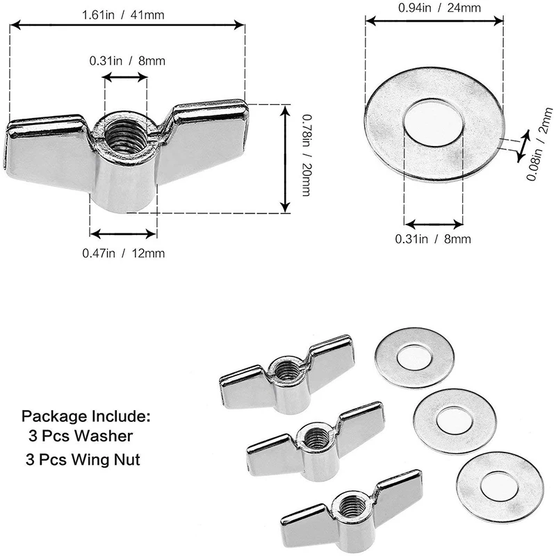 Болты и шайбы крыла: они могут помочь надежно закрепить ваш кимбал и чувствовать себя вместе, убедившись, что вы никогда не пропустите удар (или цимбал) от проблем с спиннингом. Изготовлен из нержавеющей стали и алюминиевого сердечника, чтобы помочь защитить от длительного повреждения или ржавчины.