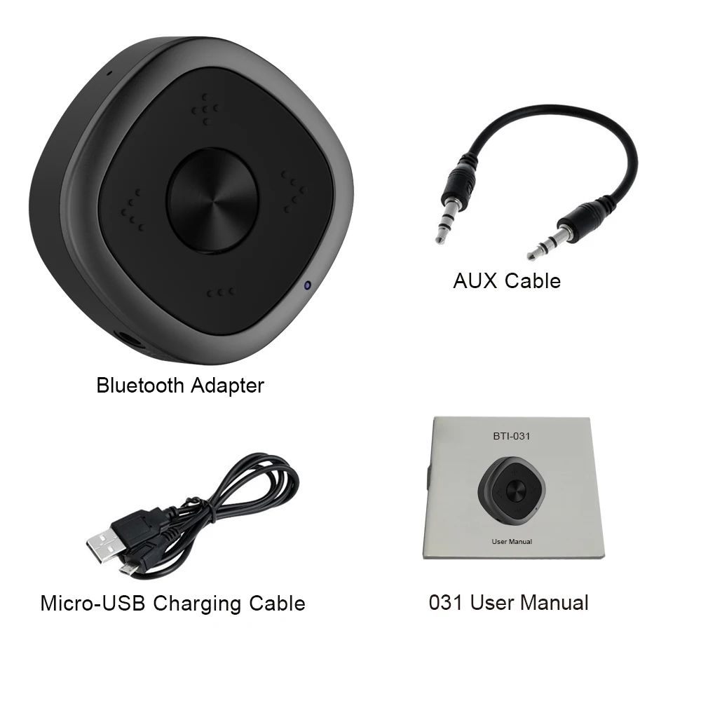 1 х Bluetooth аудио адаптер 1X3,5 мм аудио кабель 1 х USB кабель для зарядки 1 X Руководство пользователя 1 X Розничная коробка