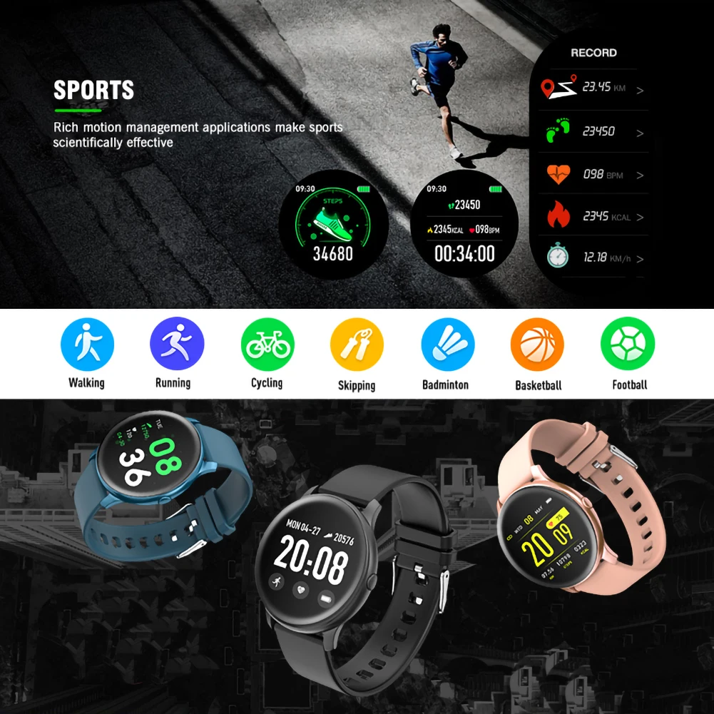 Несколько спортивных режимов, включая ходьбу, бег, Велоспорт, скакалка, бадминтон, баскетбол, футбол, позволяют вашим упражнениям быть более разнообразными.