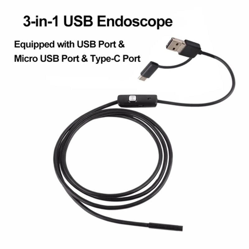 Usb-эндоскоп 3-в-1 широко подходит для смартфонов Android с портом Type-C/смартфонами Android с портом Micro-USB/ПК.