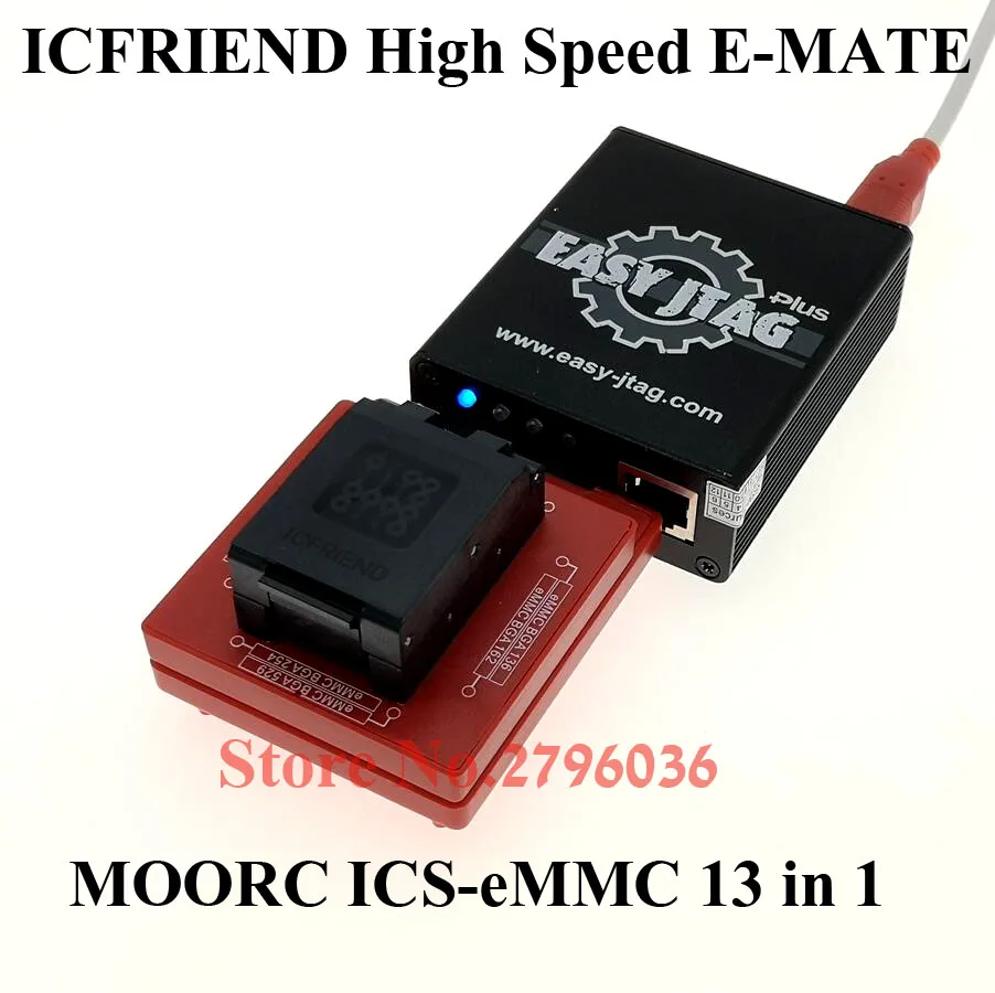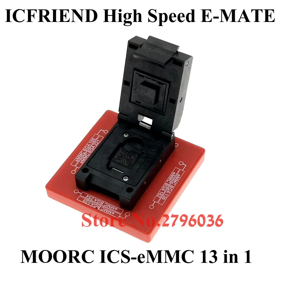 MOORC ICFRIEND высокоскоростной E-MATE EMMC ICs-eMMC 13 в 1 поддерживает слово BGA 100136168153169162186221529254. Поддерживает слово в наличии Z3xEasy jtag plus,UFI Box,MEDUSA Pro Box. ATF Box,Riff Box.