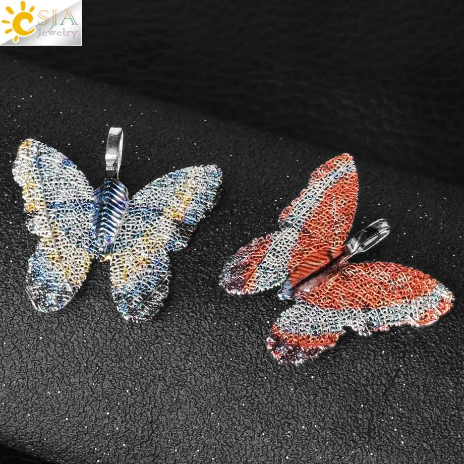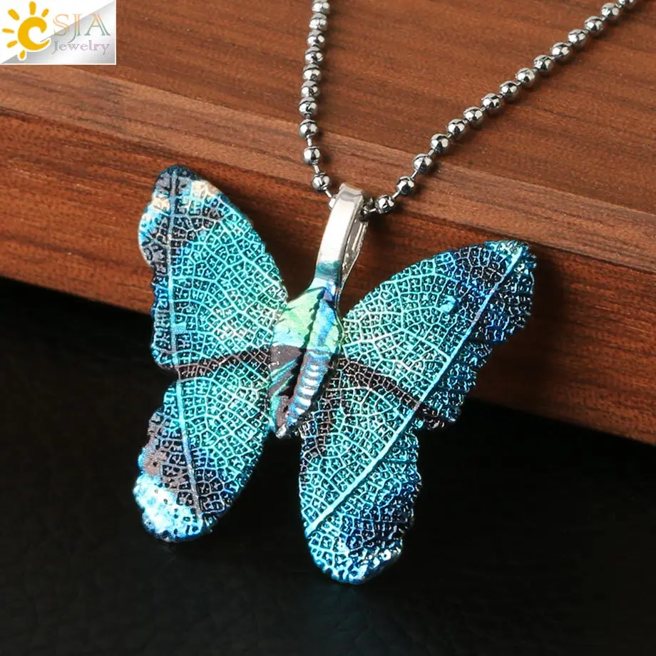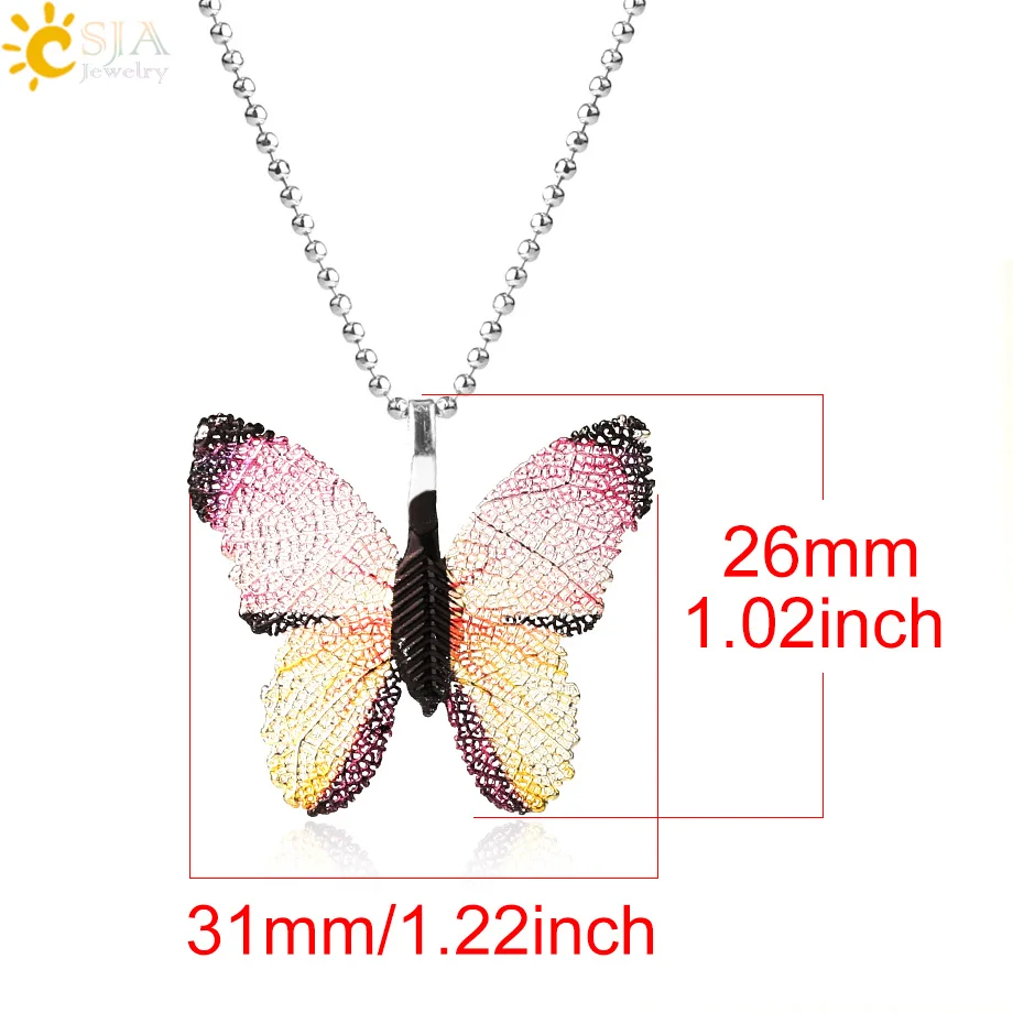 CSJA, многоцветные ожерелья в виде листьев бабочек, серебряный цвет, гальванические подвески для женщин, девушек, для вечеринки, модные ювелирные изделия G379