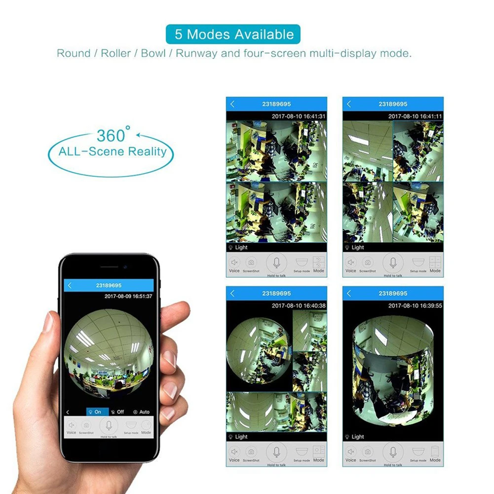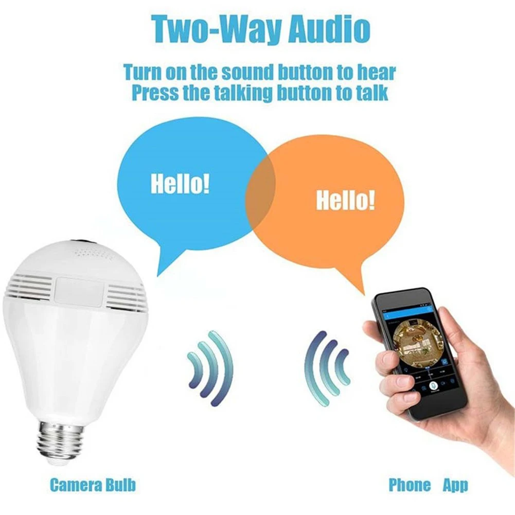 1. WiFi лампа камера. 360 ° Широкий угол обзора с разрешением 960P HD рыбий глаз камера, беспроводной дизайн, легко разместить в помещении