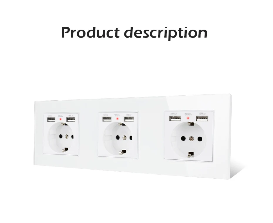 Esooli Хрустальная стеклянная панель, стандарт ЕС, настенная розетка с 6 usb-портом для зарядки мобильного телефона, скрытый мягкий светодиодный индикатор 258*86 мм