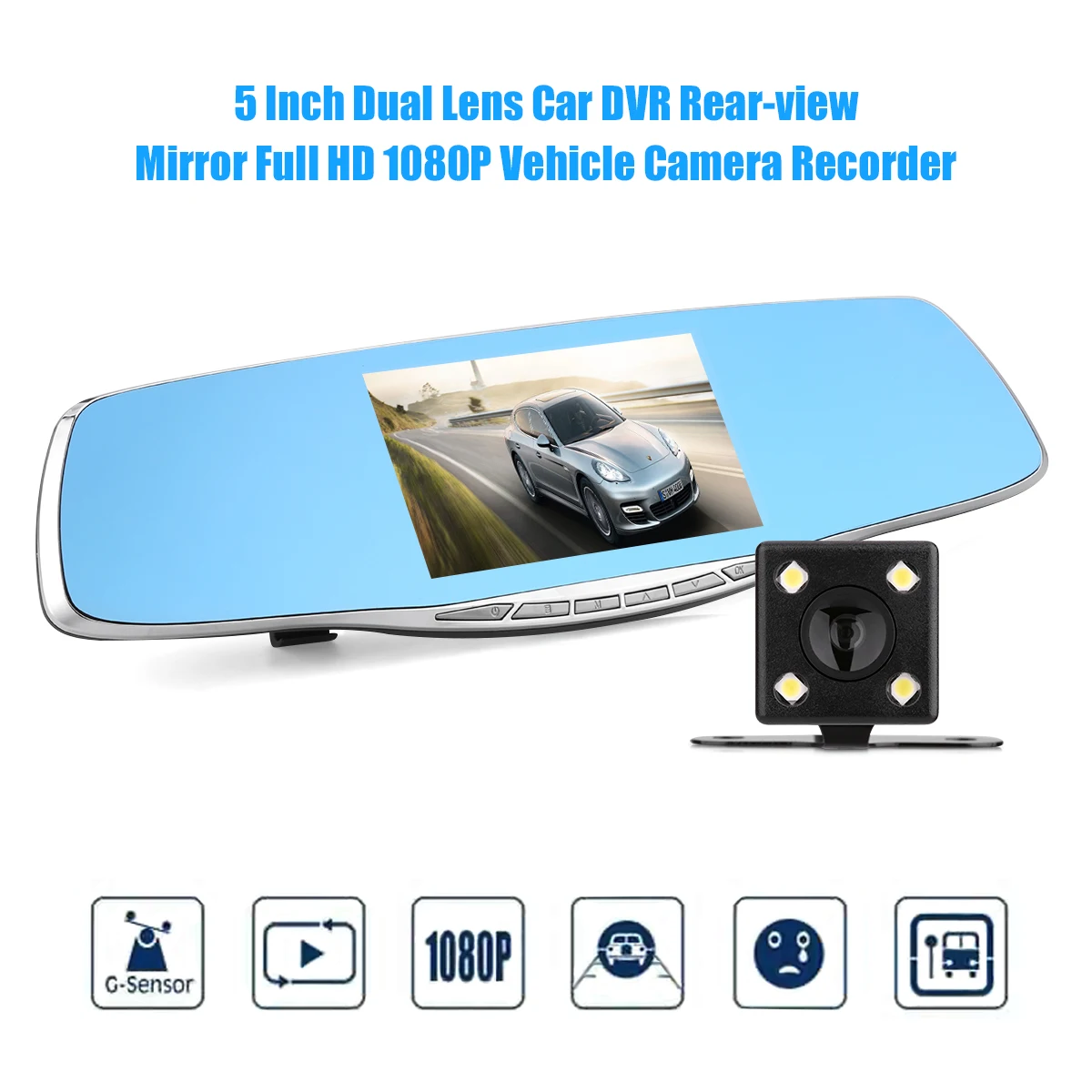 1. 5.0” TFT HD screen, Anti-glare blue mirror.