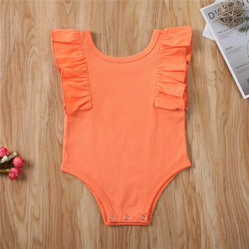 2020 летняя модная одежда для маленьких девочек и мальчиков, детский однотонный комбинезон с оборками, комбинезон без рукавов, одежда