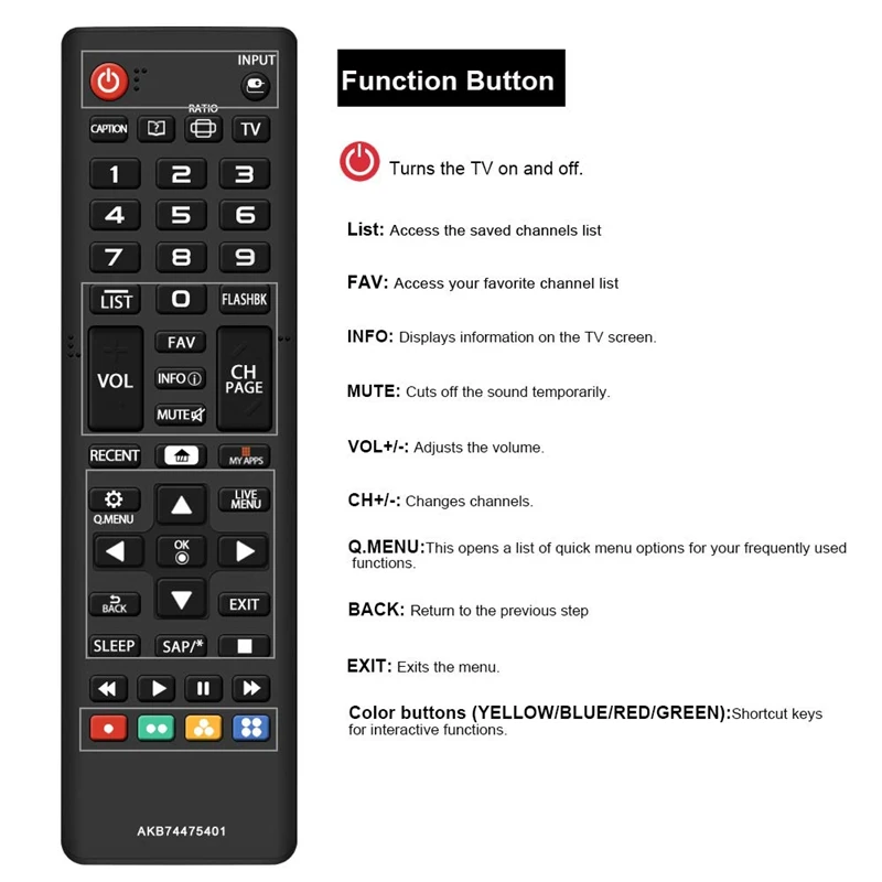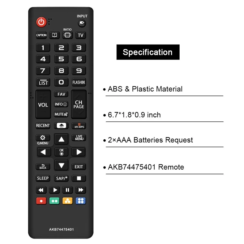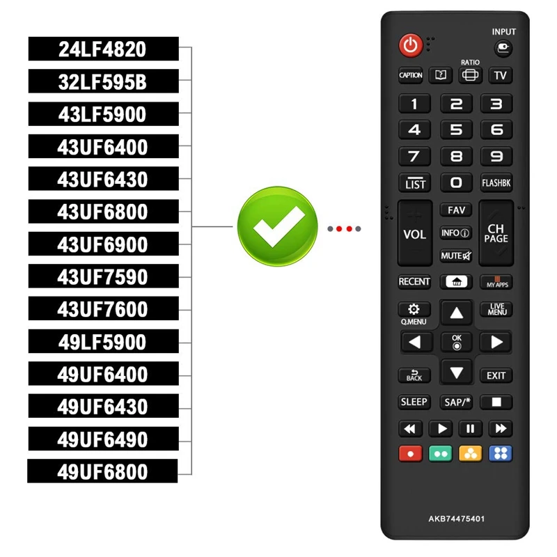 Совместимая замена пульта дистанционного управления для пульта дистанционного управления LG TV AKB74475401. Работа для 24LF4820 24LF4820BU 24LF4820-BU 24LF4820-WU 32LF595B 40lf595b 40LF6300 40UF7700 40UF7700 42lf4820 42lf595b 43lf595b 43LF5900 43LF5900 43lf630020 43LF6300 43lf630020 434040