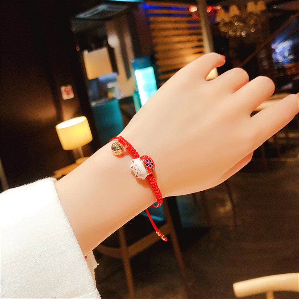 Женский красивый браслет, ювелирные аксессуары для девочек Это было модно и красиво носить Название: керамический браслет Lucky Cat Bell Материал: веревка, керамика, сплав Цвет: 7 видов цветов на выбор Размер: Регулируемый Упаковка: 1 шт. браслет lucky cat