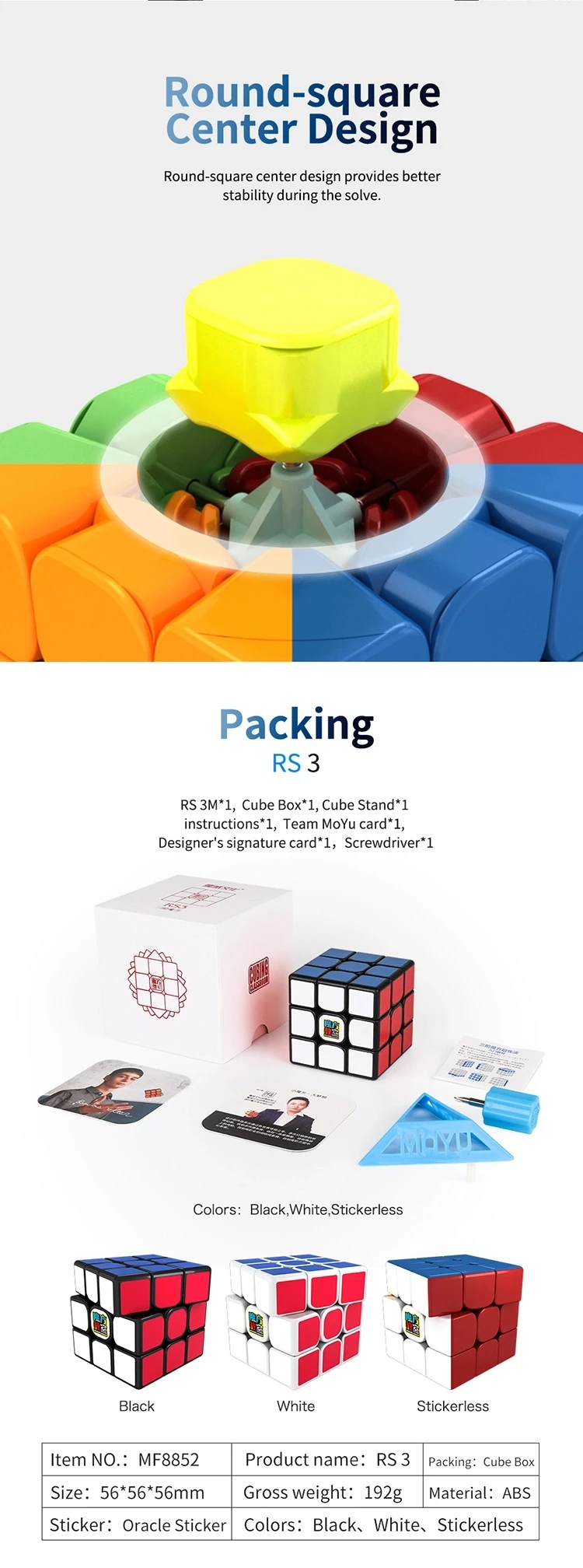 Материал: пластик Тип пластика: АБС-пластик Стиль: мультяшная игрушка, игрушка «сделай сам», развивающая игрушка Тип: Волшебные кубики Место происхождения: Шанхай, Китай Фирменное наименование: Cubing Class RS3 M 3x3x3 Cube Карта №: детская игра-головоломка Цвет: черный, без наклеек Дизайн: OEM. Оптовая продажа женское бельё Логотип: MoYu Yuhu Форма: прямоугольная Печать: CMYK 4 цветная печать Сертификат: EN71 Размер: 5,6*5,6*5,6 см Вес: 195 г