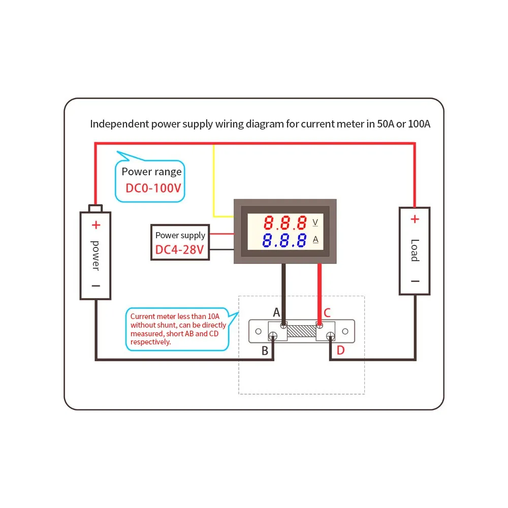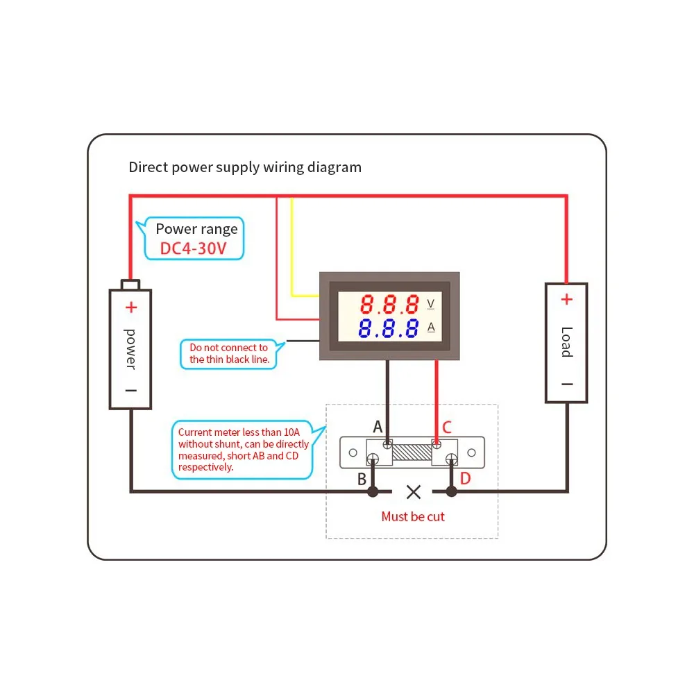 Особенности: Компактный размер для легкой установки и эксплуатации. 0,28 "светодиодный дисплей красного/синего цвета для удобного чтения. Встроенный шунт, высокая точность и надежность. Может измерять и отображать напряжение и ток постоянного тока. Включает функцию защиты от обратной полярности, чтобы избежать горения. Широкий диапазон измерения: DC0 ~ 100 в, 10A. В комплект входит тот же провод для заземления провода тестового конца и клеммы питания. Характеристики: Материал: FR4 Дисплей: 0,28 "светодиодный Цвет дисплея: красный (вольтметр)/синий (амперметр) Диапазон вольтметра: DC0 ~ 100 в Диапазон амперметра: DC10A Источник питания: DC4 ~ 30 В Рабочий ток: <20 мА Точность напряжения: ± 0.1% Точность тока: ± 1% Частота обновления: 300 мс/раз Внешний шунт: 75mΩ Рабочая температура: -10 ~ 65 °C / 14 ~ 149 °F Размер модуля: 4,7*2,8*2,2 см/1,85*1,10*0,87 дюйма Размер посылка: 10*7*2,5 см/3,94*2,76 * 0.98in Вес посылка: 22 г/0,78 унций Посылка: 1 * цифровой измеритель напряжения и ампер 2 * провода для тестирования
