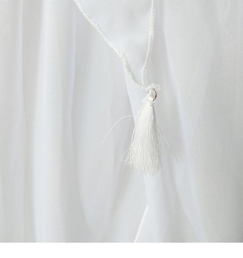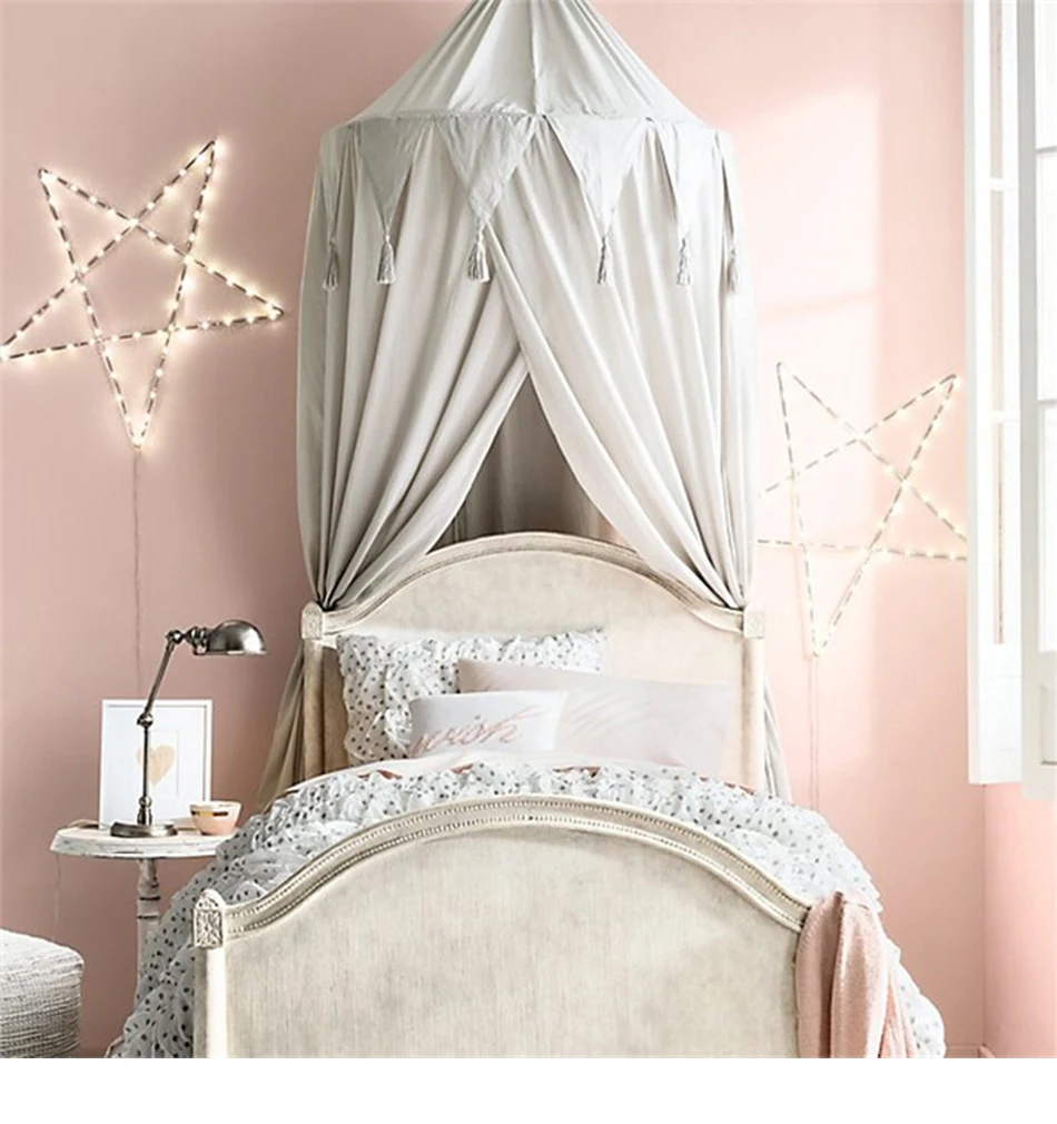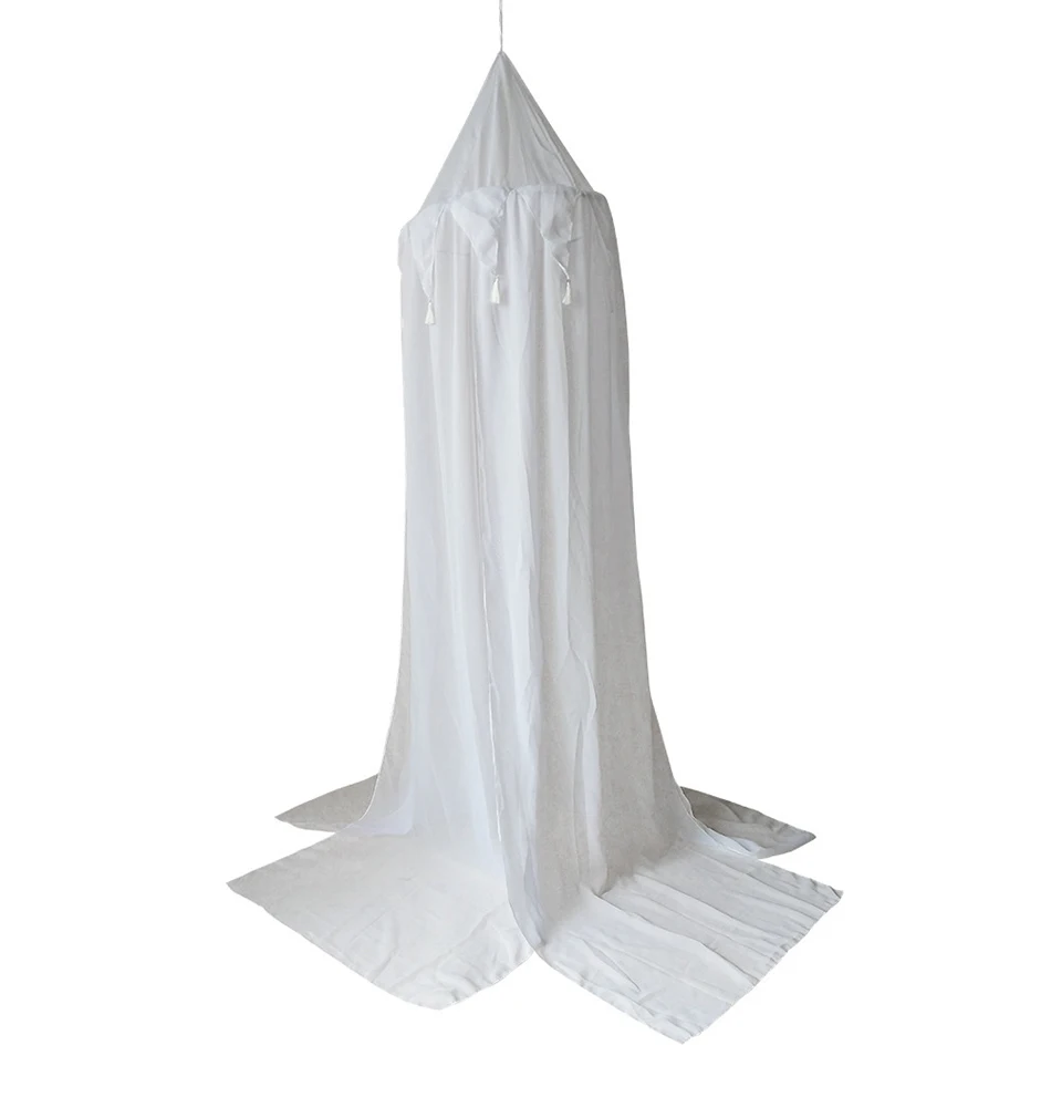 1. Цвет: белый, розовый, серый 2. Материал: хлопок, лен 3. Стиль: скандинавский, принцесса, мода 4. Форма: купол 5. Общая высота: прибл. 240 см/94,5 дюйма (длина хлопковой веревки сверху не входит в комплект) 6. Диаметр стального кольца: прибл. 50 см/19,7 дюймов
