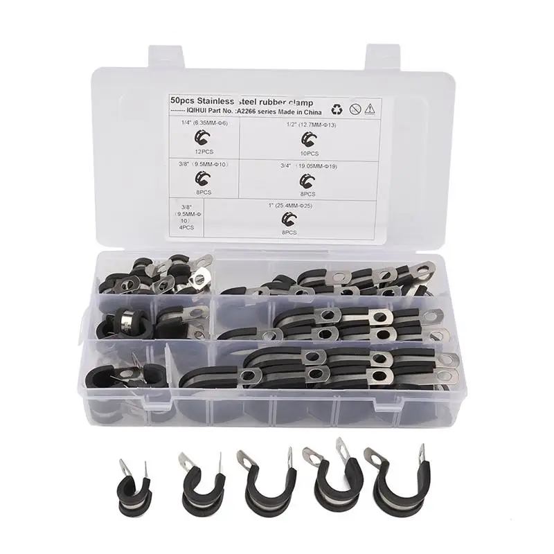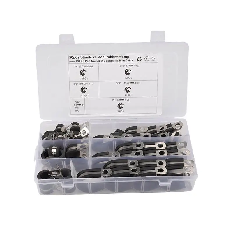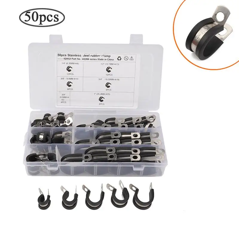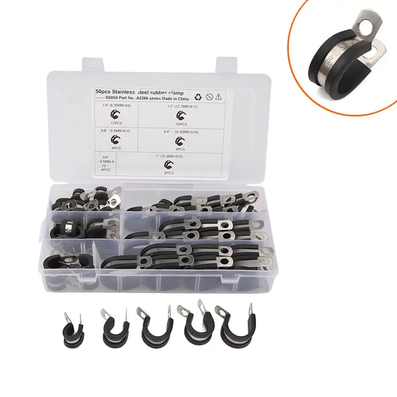 50 шт. автомобильные зажимы для топливного шланга 304 из нержавеющей стали с резиновой подкладкой уплотнительный Зажим для труб