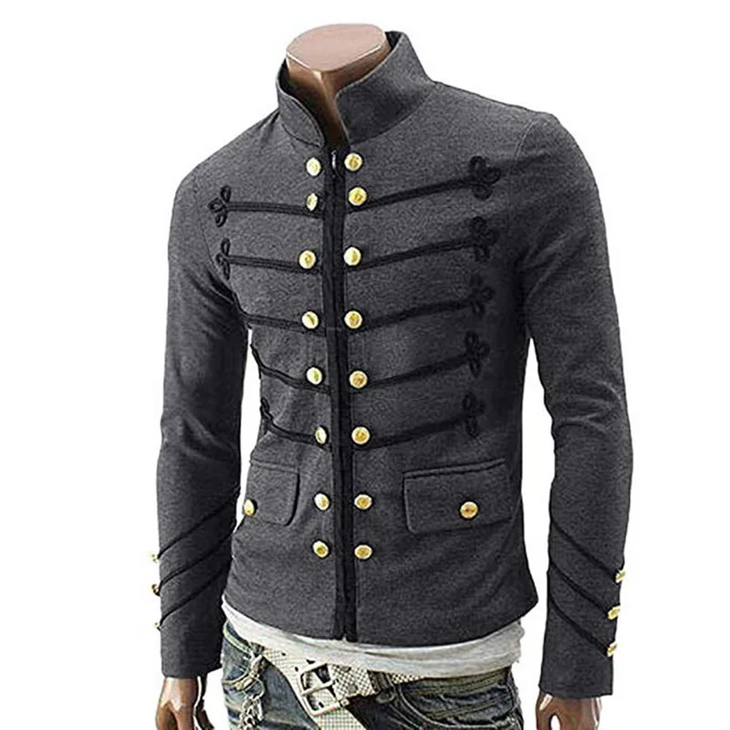 JODIMITTY 2020VВходОднотонная Мужская Готическая куртка, стимпанк туника, рок-платье, Униформа, Мужская винтажная панк металлическая военная куртка, верхняя одежда