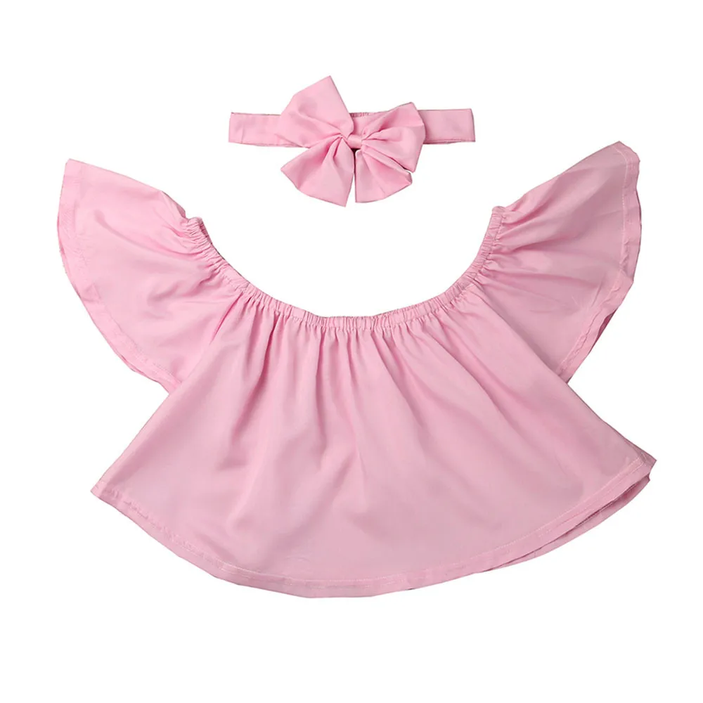 Детская футболка с оборками и открытыми плечами для маленьких девочек топы, летняя одежда, наряды