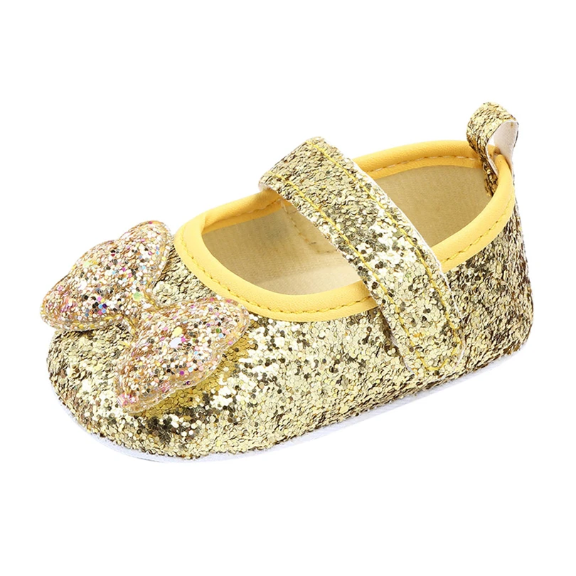 Обувь для новорожденных девочек; Обувь для маленьких принцесс с блестками на застежке-липучке; Неглубокая домашняя обувь с мягкой подошвой и бантом; Прогулочная обувь; A40