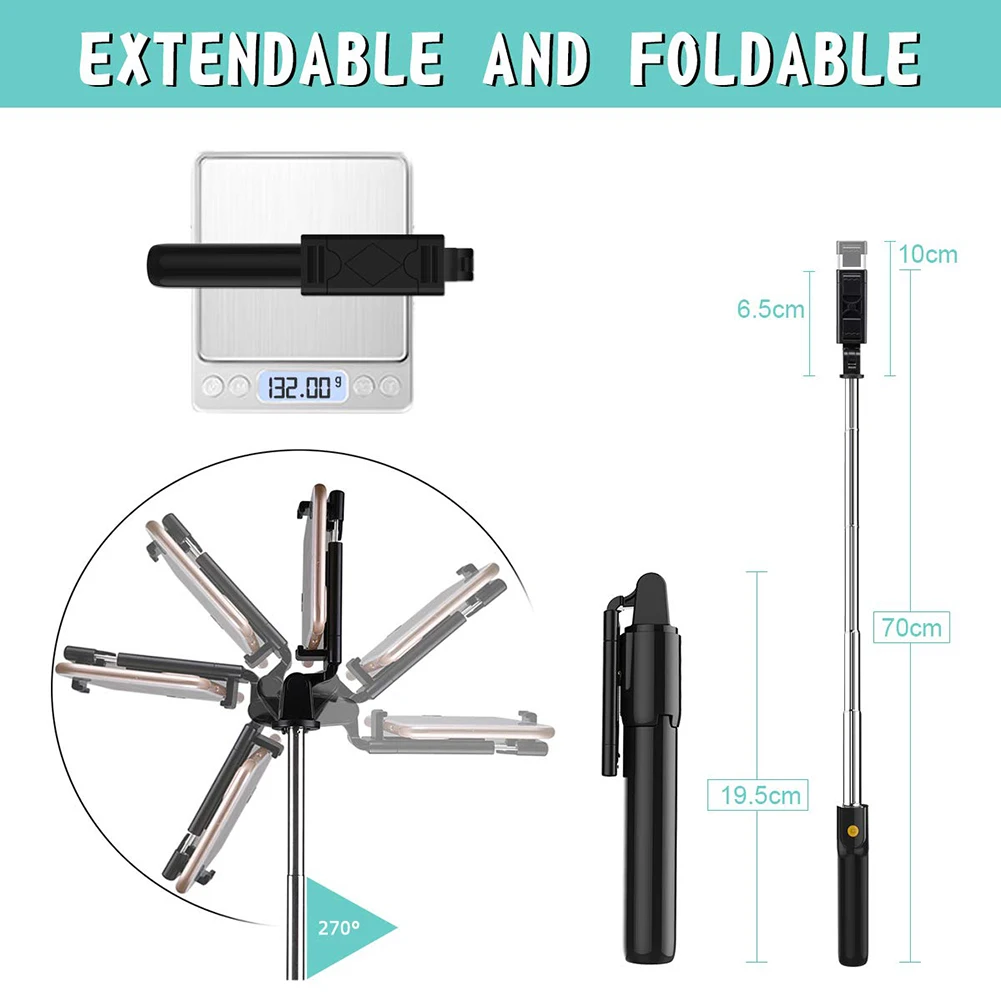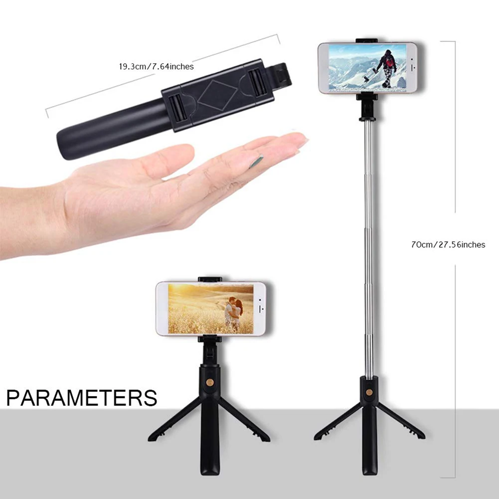 1,3 в 1 selfie stick имеет встроенный модуль Bluetooth дистанционный пульт, что позволяет делать selfie s с дистанционный пульт. Разделяйте элементы управления и снимайте групповые фотографии на вечеринках и выпускных, свадеб и поездок. Его можно использовать в качестве обычной селфи-палки или быстрого мобильного штатива.