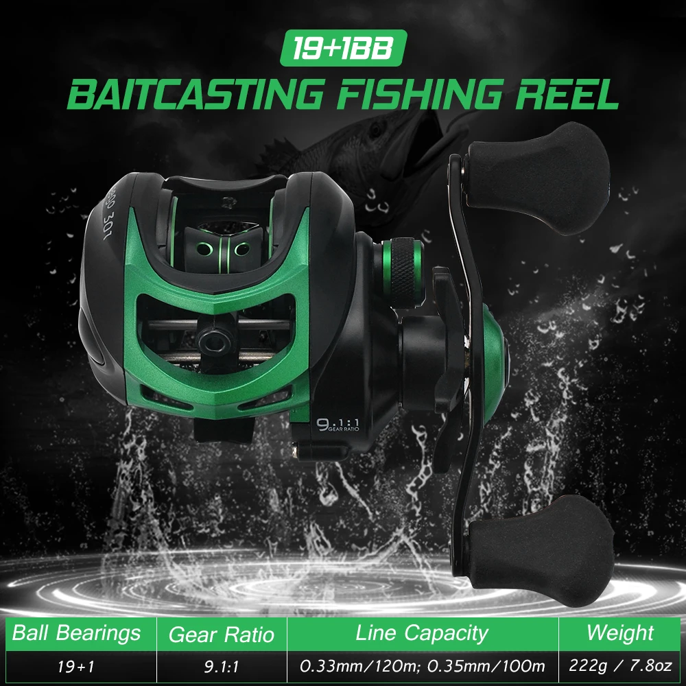Этот литье затравки Рыболовная катушка характеристики 19 + 1 шарикоподшипники и 9,1: 1 супер высокая скорость Передаточное отношение, что делает ее мощным рыболовные снасти для любителей рыбной ловли.