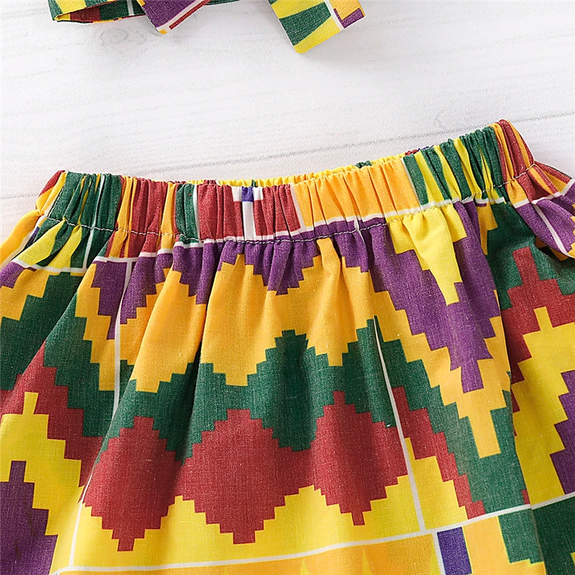 Детская юбка в африканском стиле для маленьких девочек + набор из повязки на голову с бантом, бальный костюм до колена с принтом пейсли для девочек, meisjes rok A40