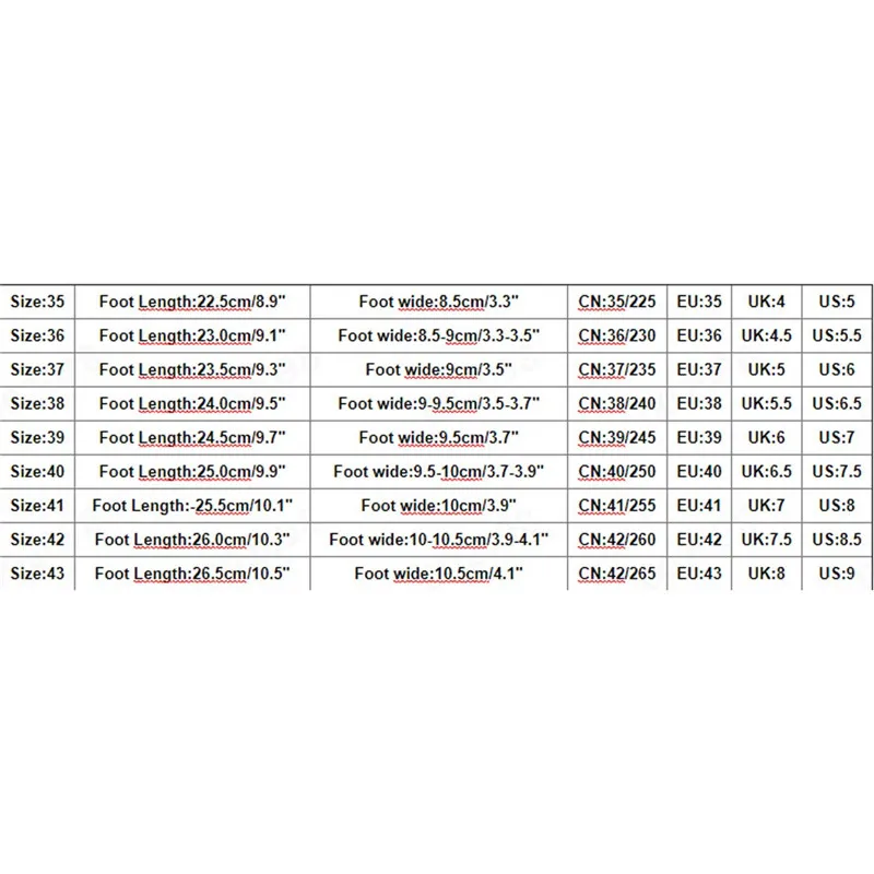 Полезные советы:Различные стили обуви, пожалуйста, выберите размер в соответствии с типом вашей стопы.