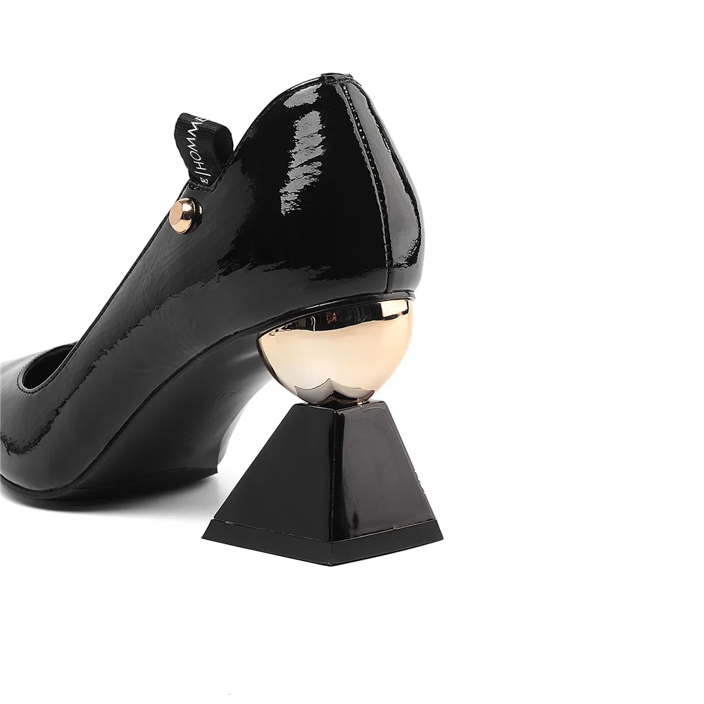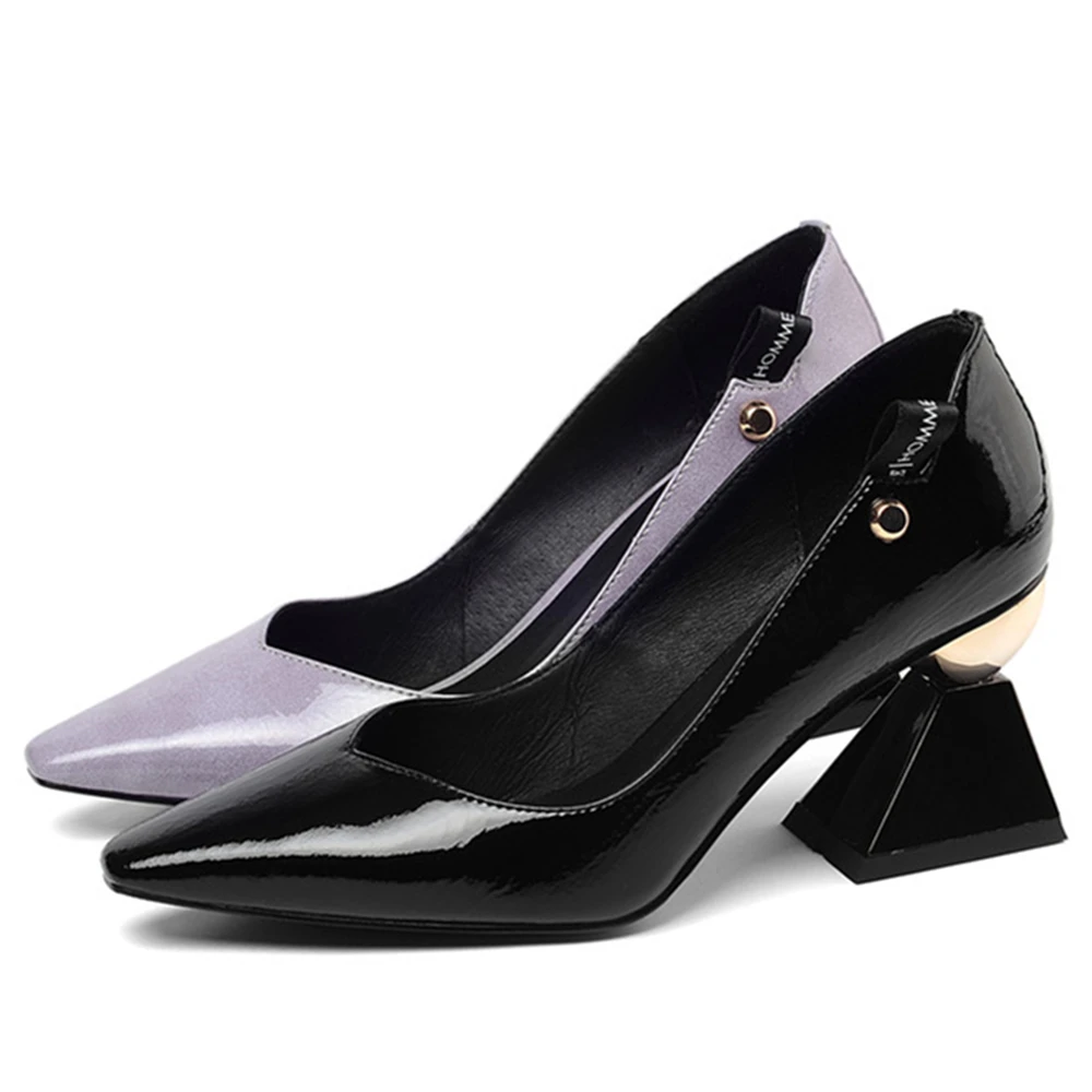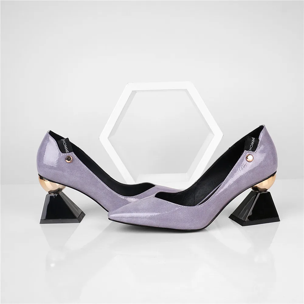 MILI-MIYA; Новинка; Женские туфли-лодочки из лакированной кожи; Необычный каблук; Острый носок; Без шнуровки; Цвет черный, фиолетовый; Вечерние туфли; Сезон весна-осень; Ручная работа