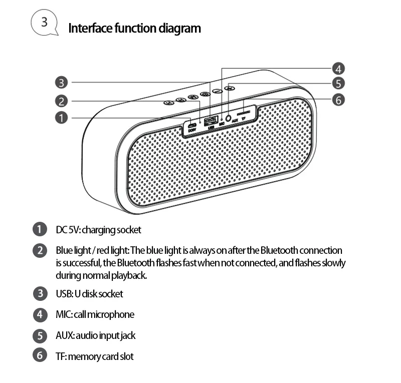 Bluetooth-динамик * 1 Кабель AUX * 1 USB-порт для зарядки * 1 Гарантия качества 2 года Круглосуточная поддержка клиентов и электронная почта