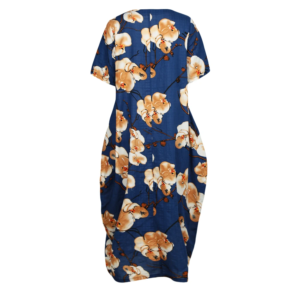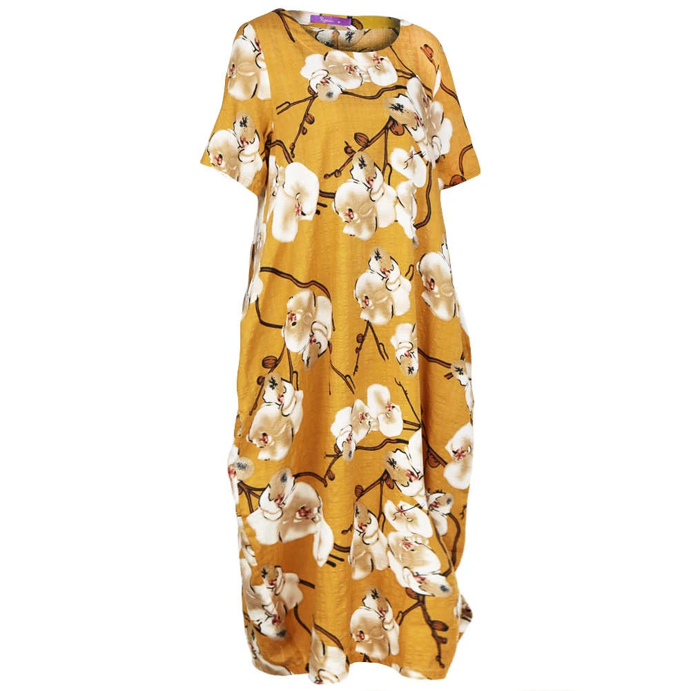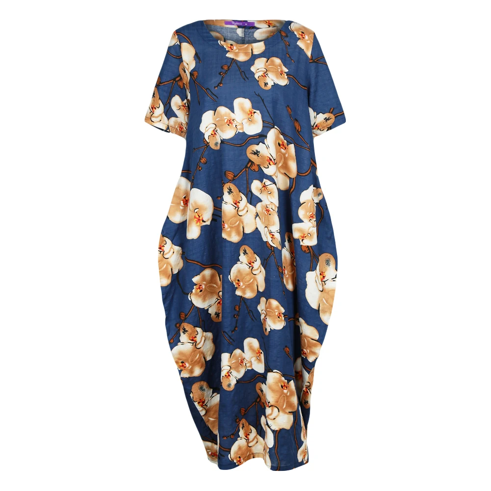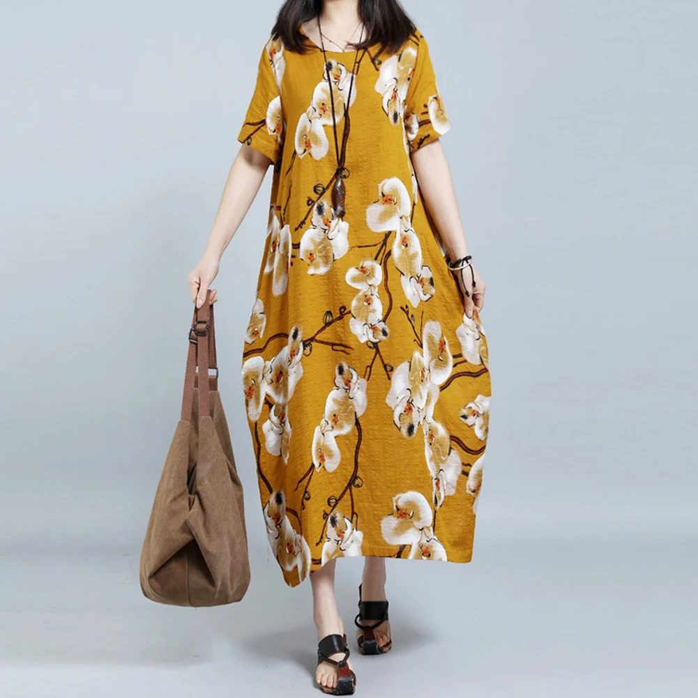 С повторяющимся цветочным принтом, круглым вырезом, боковыми карманами и короткими рукавами, свободное платье этого размера плюс принесет вам комфорт и мода. Приходите и получите один!